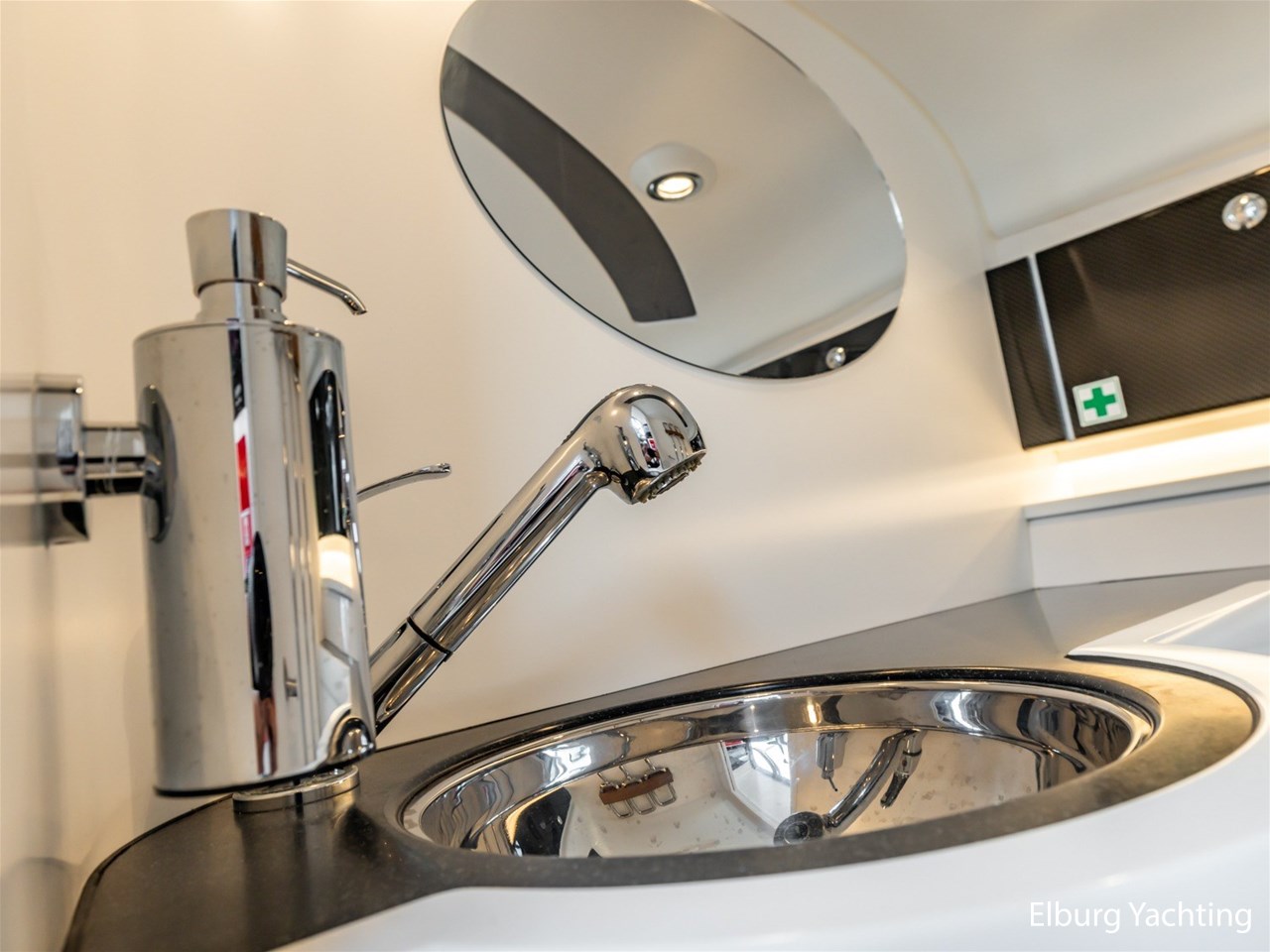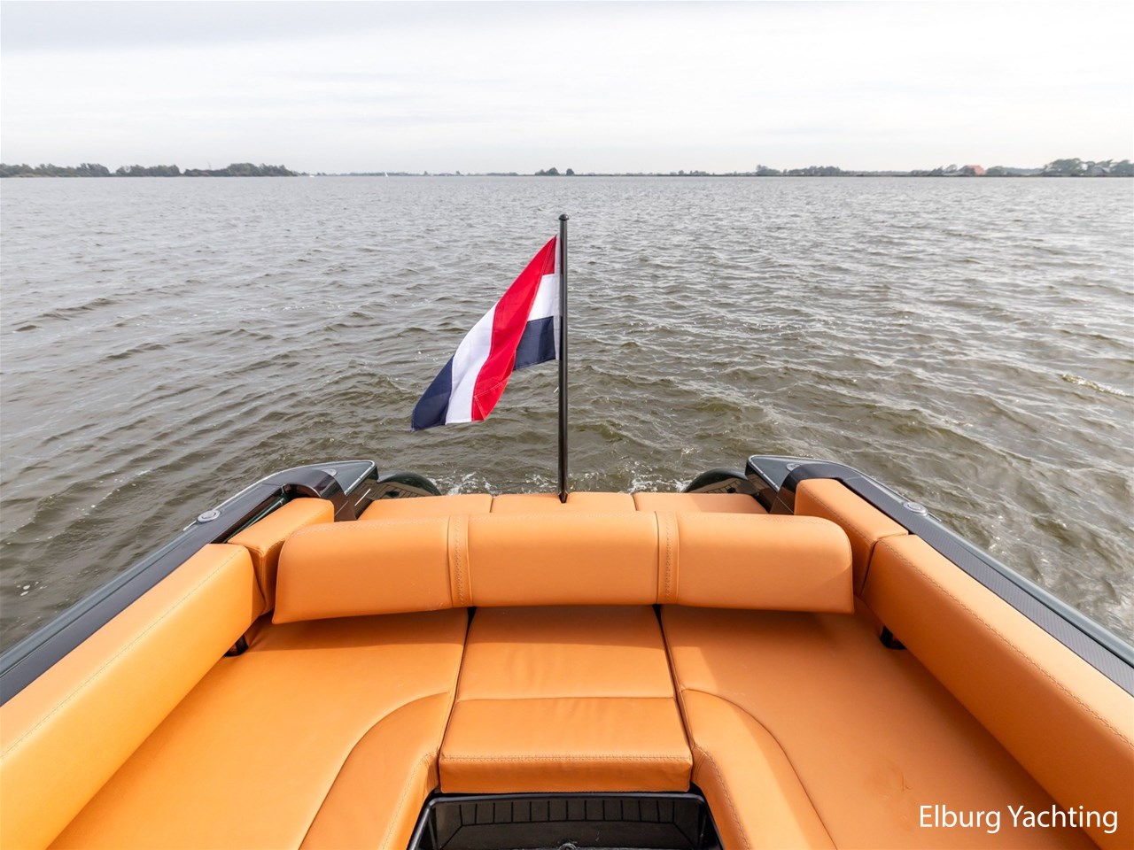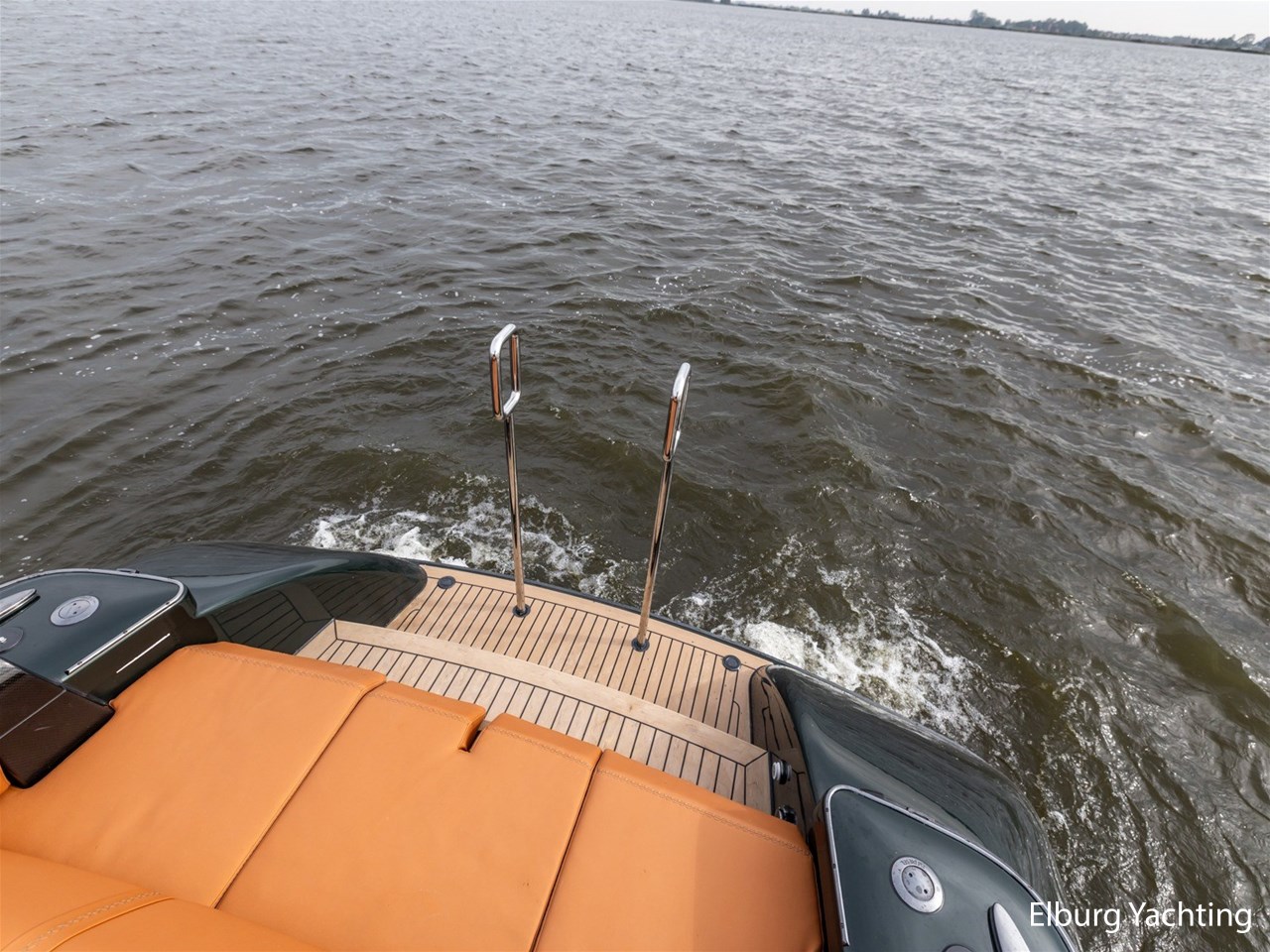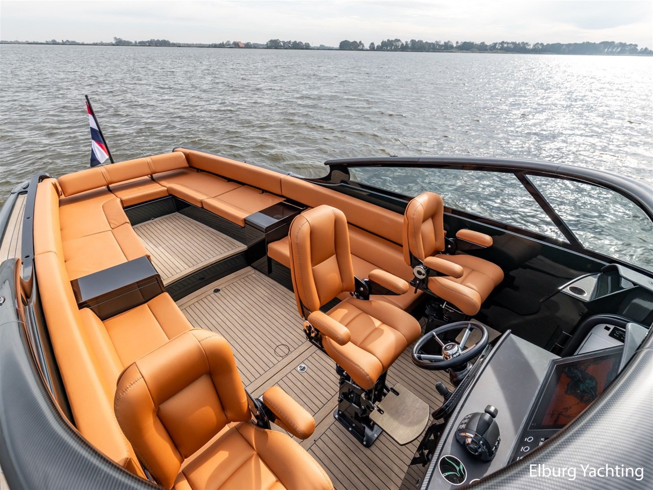Prachtig uitgevoerde Wajer 38 met de IPS600 topmotorisering van Volvo Penta. Deze Wajer 38 is begin 2025 volledig door Wajer Yachts herspoten in de kleur Bentley Cumbrian Green, de binnen- en buitenbekleding is vernieuwd, er is een uitneembaar ligbed in het achterdek toegevoegd en de zwemtrap is vergemakkelijkt met een uitneembare handreling. In het oog springende elementen is het carbon fiber afgewerkte exterieur design, zwart geanodiseerd r.v.s. dekbeslag, Fusion audio met 4 versterkers / 8 speakers / 2 woofers, onderwaterverlichting, Webasto verwarming en airconditioning. Verder is deze Wajer 38 uitgerust met: dimbare sfeerverlichting in de kuip en kajuit, zonnebed op het voordek met afdekhoes, ankerkluis met bergruimte en water aansluiting, inklapbare fenderogen en bolders, wegneembare r.v.s. handgeleiders voor op- en afstappen van boord, klapbare voorruit, multifunctioneel display voor bediening boordsystemen en verlichting, drie keer Stidd stoelen met X-craft vering, afneembare zwarte biminitop over de stuurstand, volledige Wajer afdekhoes over de kuip. De kuipbank kan gebruikt worden in U-opstelling, volledig zonnebed of door het wegnemen van het middenstuk wordt er een volledige doorloop gecreëerd naar het zwemplateau. Topsnelheid ca. 45 knopen, kruissnelheid ca. 25 knopen.