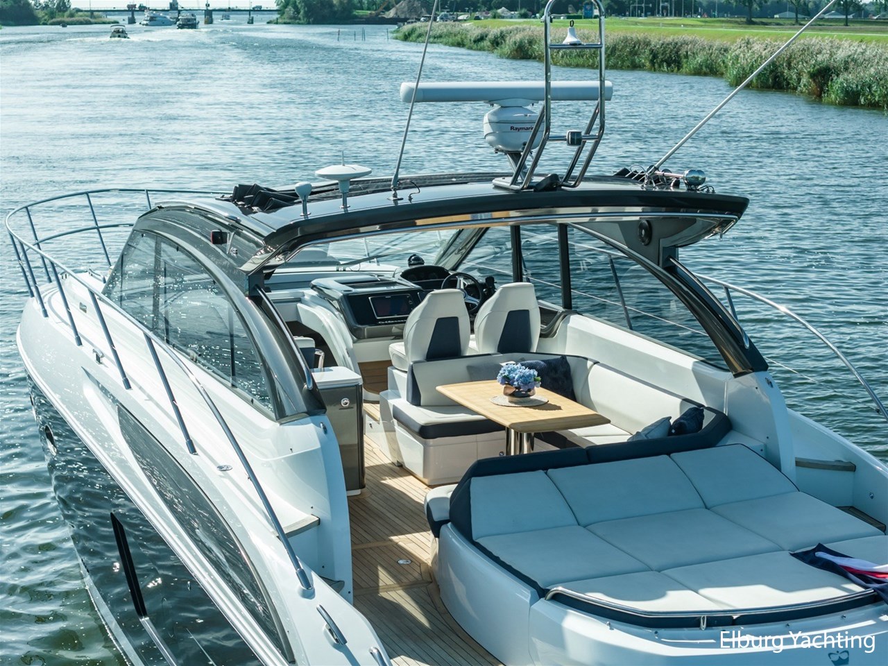 Deze mooie Princess V48 is met haar sportieve lijn een mooie verschijning op het water. Het schip beschikt over onder andere: hydraulisch zwemplatform voor de ultieme waterbeleving, garage voor bijboot van 3.25m, zonnebed in kuip. gangway, airconditioning per ruimte, hetelucht verwarming, elektrisch schuifdak over de kuip, motorservice april 2025, generator service april 2025, gepolijst oktober 2025, Volvo Penta IPS systeem voor eenvoudig manoeuvreren, Volvo Penta motormanagement systeem, roerstandaanwijzer, Dockmate afstandsbediening, volledig afsluitbare tent rondom kuip, uitstroomopening voor verwarming in kuip, houten vloer in salon + keuken, bed in gastenhut is verstelbaar en te gebruiken als V-bed of vrijstaand bed, muggenhorren, Fisher en paykel vaatwasser, Electrolux 1-3 kg wasmachine, buitenkeuken met grill en spoelbak, 2 x luxe vaarstoel.