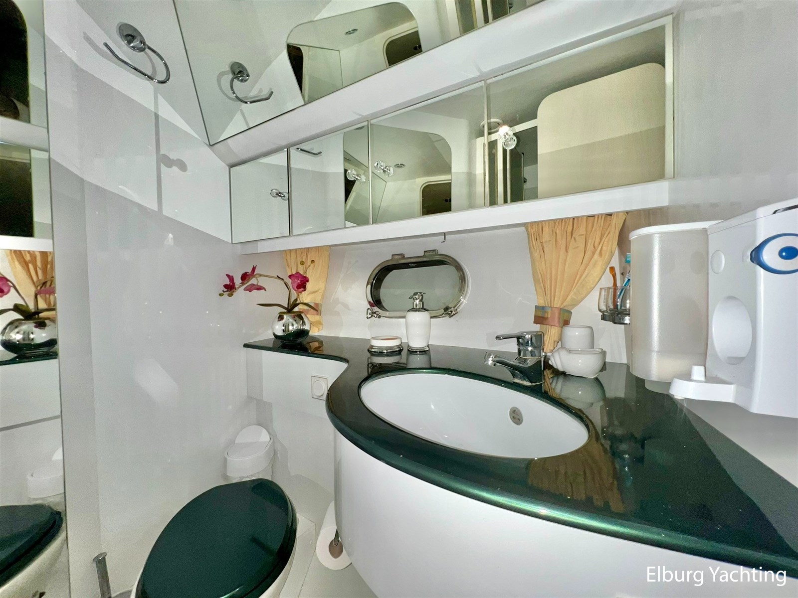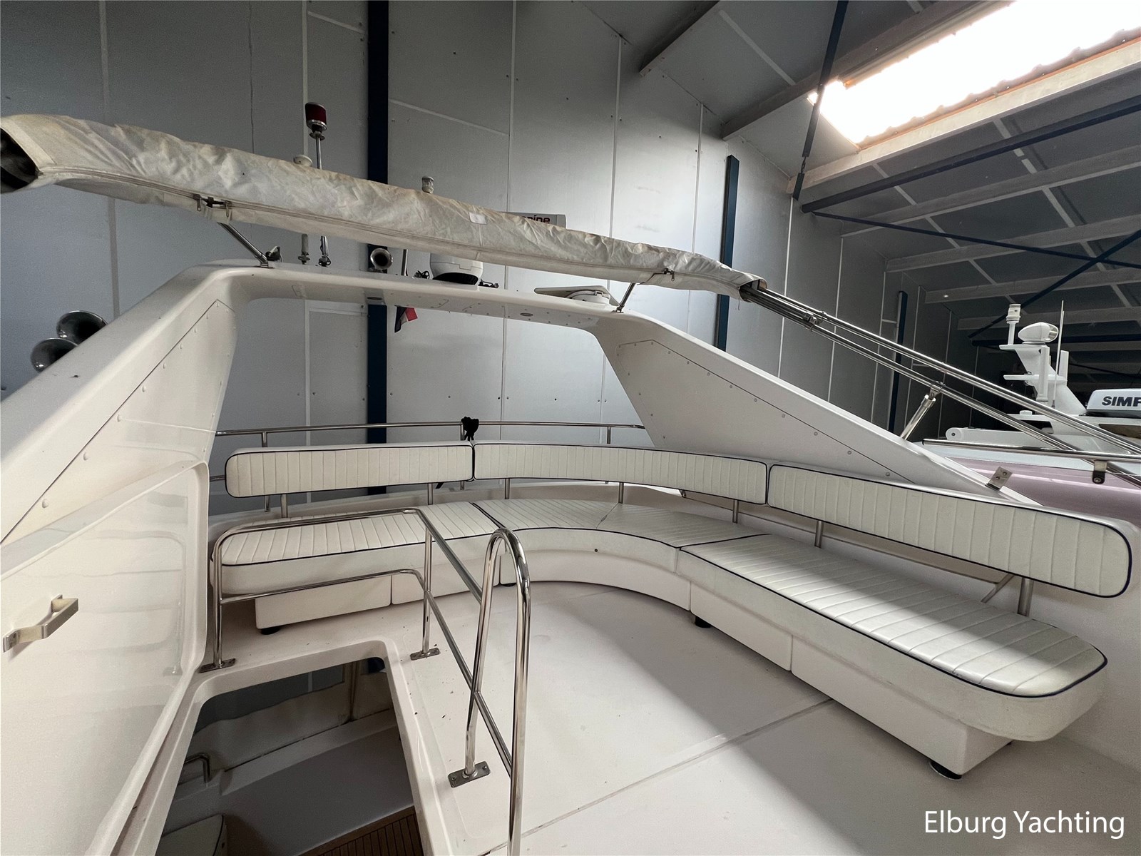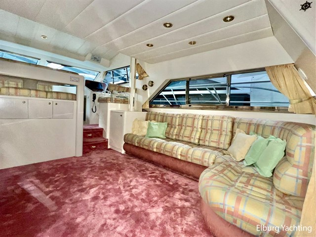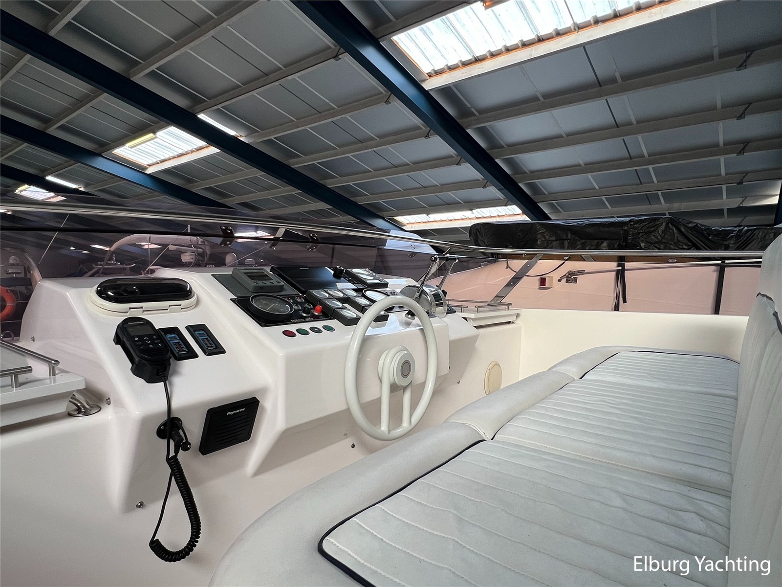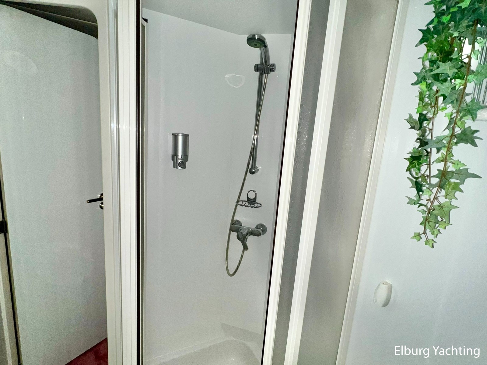 Deze ruime en sportieve Neptunus 156 verkeert in nette staat voor zijn leeftijd en wordt verkocht door de eerste eigenaar. Het jacht beschikt over drie hutten voor minimaal 6 opvarenden en heeft twee aparte badkamers. De open kuip en de salon zijn gelijkvloers met elkaar verbonden. Een complete tent dekt de open kuip af met grote zichtvensters. Via een vaste trap in de kuip krijg je krijg je toegang tot de riante flybridge met een U-vormige zitbank. De stuurstand heeft een 2-persoons vaarbank en biedt een overzichtelijke dashboard met alle benodigde apparatuur waaronder een vernieuwde Raymarine Axiom Pro 9 S plotter. De salon wordt betreden via een afsluitbare r.v.s. schuifpui. Een riante L-bank met twee geïntegreerde fauteuils bieden veel zit comfort. Er zijn veel opbergmogelijkheden in banken en kasten. De dinette bevindt zich tegen over de stuurstand waardoor de gehele crew op vaarhoogte kan meekijken. Benedendeks bevind zich de kombuis met een koelkast / vriezer / magnetron / vaatwasser / kookplaat en spoelbak. Aan SB-zijde bevind zich een 2 x 1-persoons gastenhut en aan BB-zijde een 1 x 2 persoons hut met frans bed. De gasten badkamer bevind zich midscheeps en is vrij toegankelijk. In het voorschip bevind zich de eigenaarshut met een 1 x 2 persoons bed met badkamer en-suite. Onder het bed van de voorhut bevind zich een ruime berging. Via een breed luik in de kuipvloer wordt het achterschip betreden. In het achterschip bevind zich opbergruimte, zowel een wasmachine als droger, de generator en nog verdere techniek. Via het achterschip is er een doorloop naar de machinekamer. De bakboordmotor is in de winter van 2023-2024 vervangen, rekeningen van deze werkzaamheden zijn beschikbaar. Deze Neptunus 156 is verder voorzien van: Afneembare kussens voor het achterdek, flybridge en voordek, bimini top over de flybridge, delen op de flybridge voorzien van afdekhoezen, r.v.s. fenderhouders, afsluitbare kuip met deur naar zwemplateau, buiten verlichting, 4 x schuifraam in salon voor ventilatie + 2 horren, muggenhorren voor patrijspoorten, afneembaar zonnescherm op voorruit, zijladder. Stahoogte in het interieur ca. 2 meter.