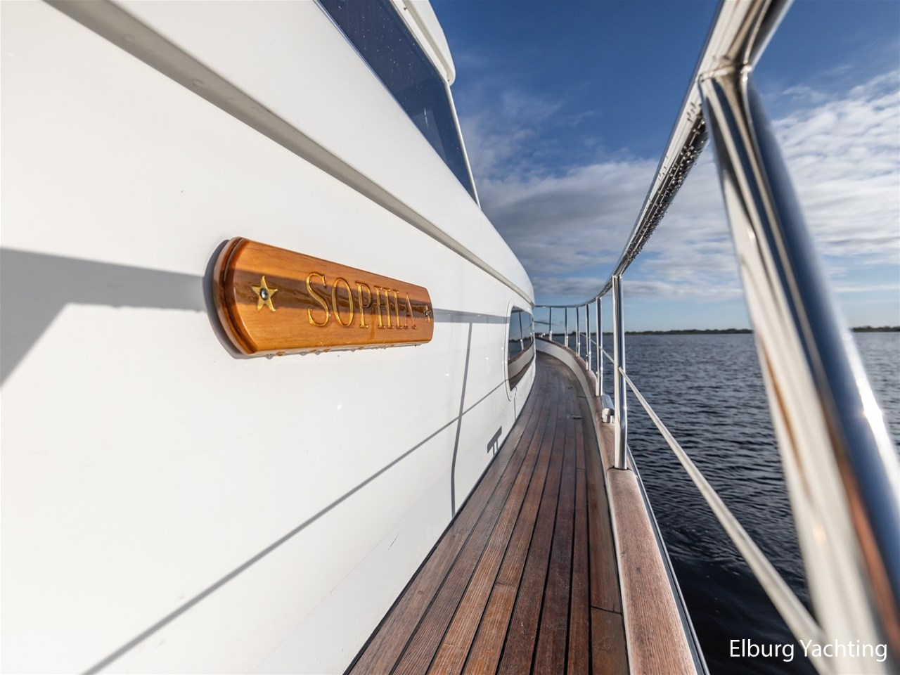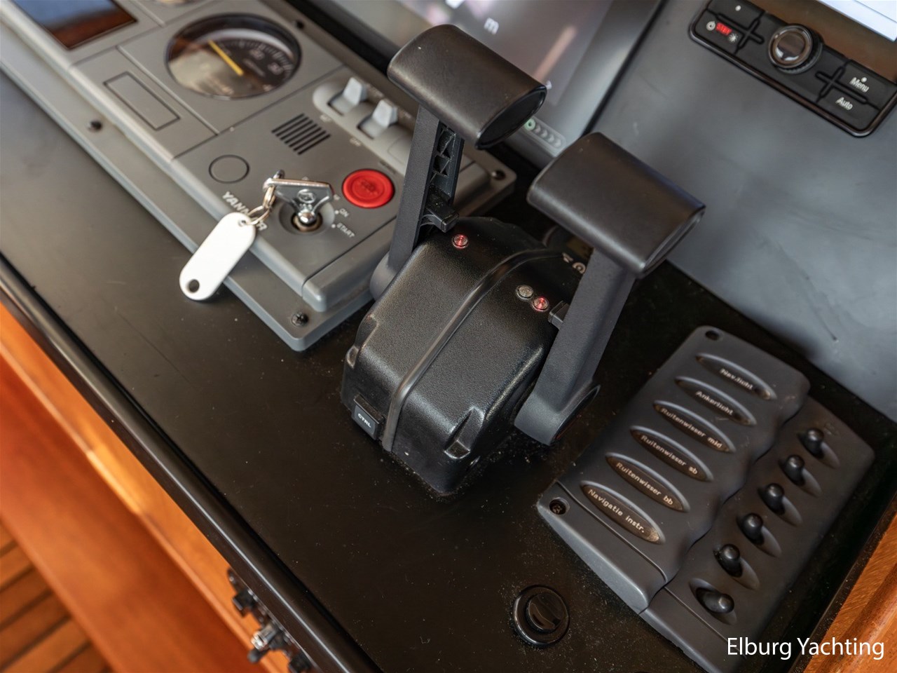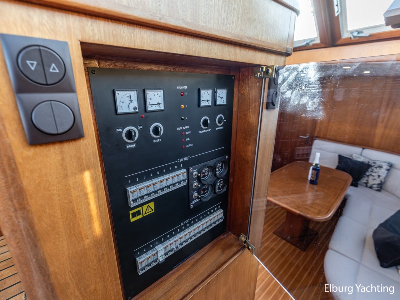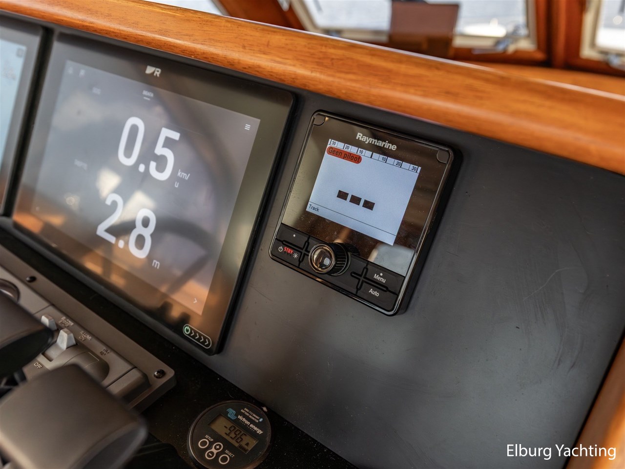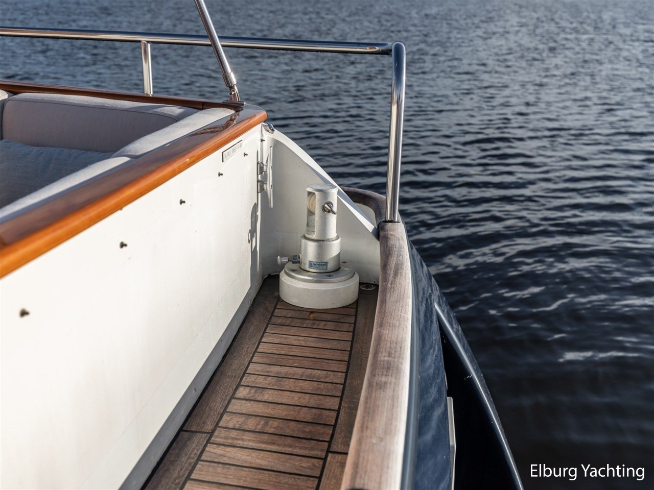 Het onderwaterschip is in diezelfde periode gestraald en behandeld met nieuwe antifouling. In 2023 is groot motoronderhoud uitgevoerd, inclusief de plaatsing van twee nieuwe turbo’s. In 2024 is aanvullende service aan de motoren uitgevoerd. Het jacht is voorzien van schroefassen en vierblads schroeven. De generator is in mei 2025 geserviced. De kruissnelheid bedraagt ca. 8 knopen bij 2500 rpm, met een maximale snelheid van ca. 11 knopen bij 3300 rpm. De economische vaarsnelheid ligt rond de ca. 7 knopen bij 2200 rpm. Qua uitrusting is het jacht voorzien van een uitgebreid en recent vernieuwd Raymarine-navigatiesysteem met onder andere twee Axiom 12” displays, radar, AIS, GPS, autopilot met afstandsbediening, VHF, windmeter en een camera op de radarboog. In 2023-2024 is er een nieuwe hekschroef met afstandsbediening aangebracht, naast de bestaande boegschroef. De kussens op het voordek zijn aanwezig en in 2023-2024 vernieuwd. Verder is het jacht uitgerust met RVS fenderhouders en een zoeklicht. Volledige documentatie van de werkzaamheden is op aanvraag beschikbaar.