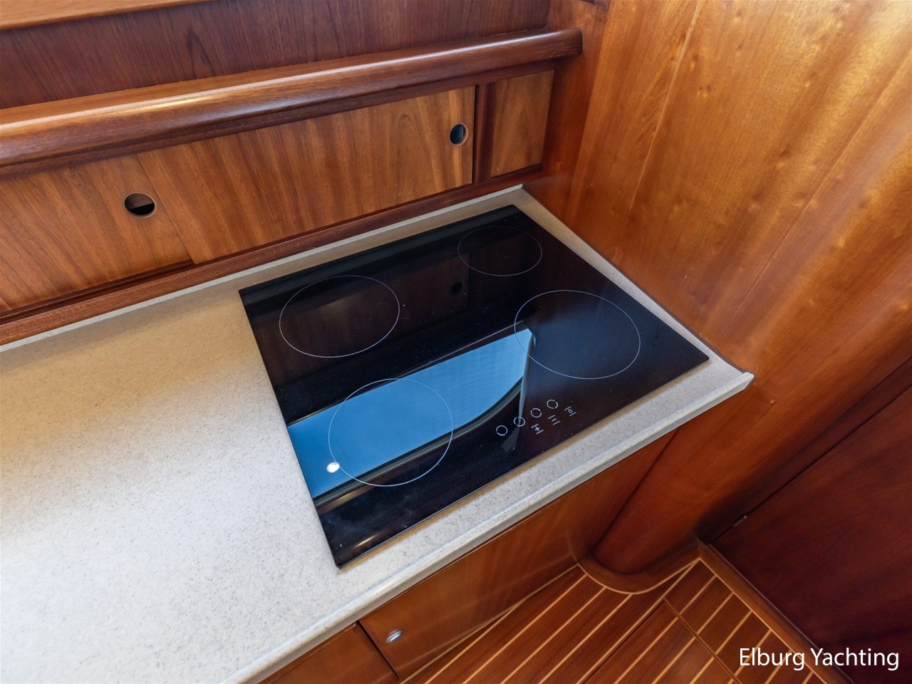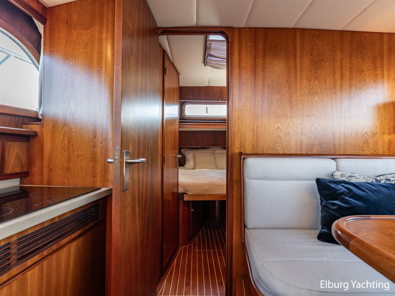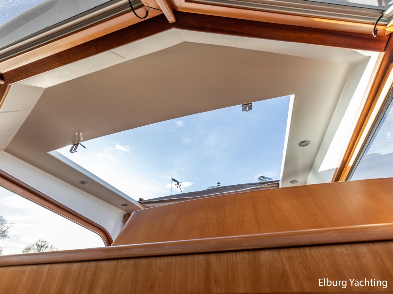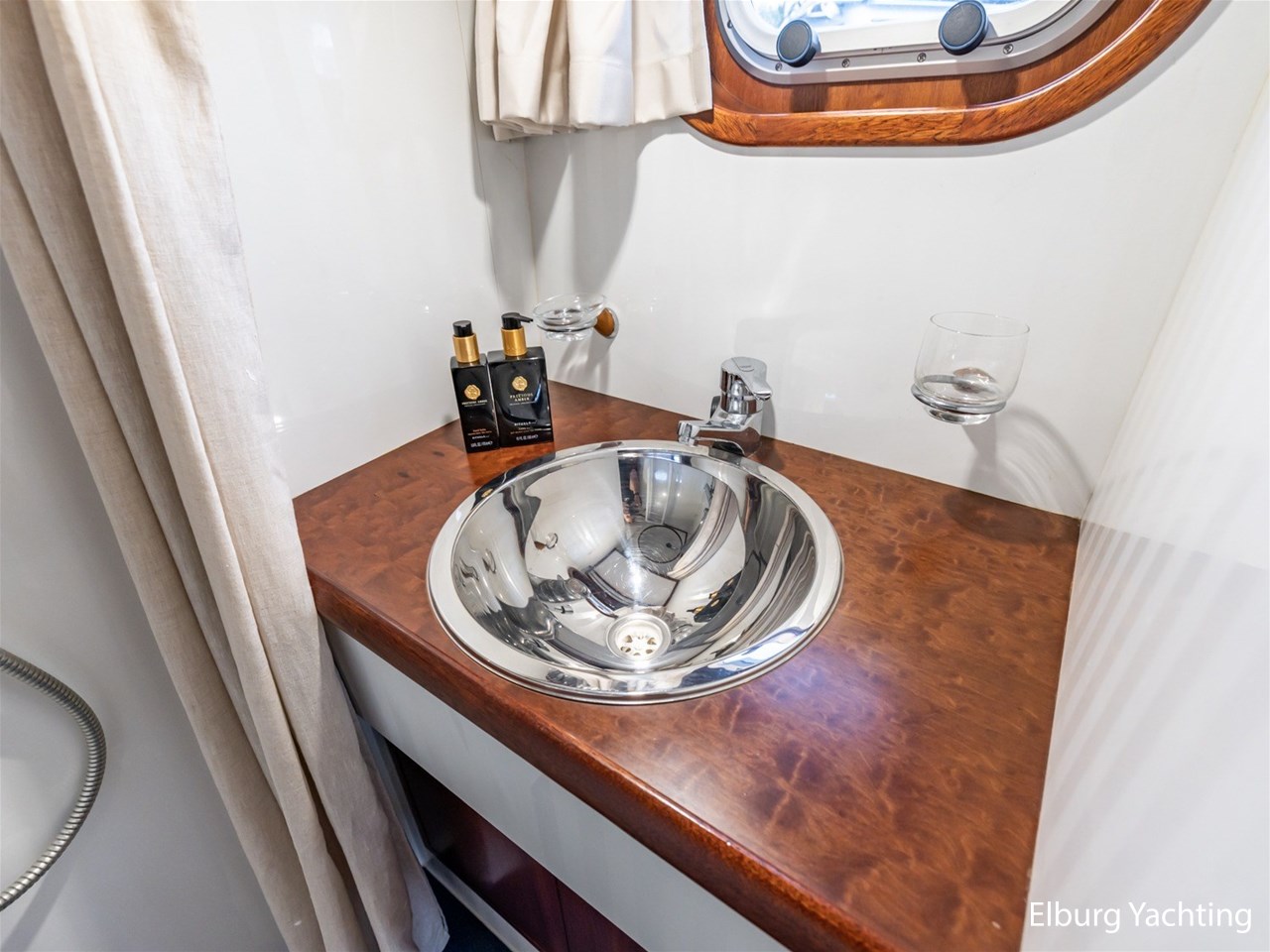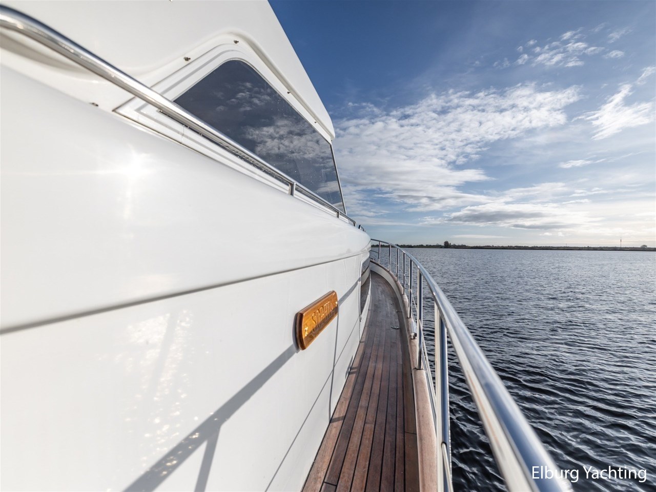 Het onderwaterschip is in diezelfde periode gestraald en behandeld met nieuwe antifouling. In 2023 is groot motoronderhoud uitgevoerd, inclusief de plaatsing van twee nieuwe turbo’s. In 2024 is aanvullende service aan de motoren uitgevoerd. Het jacht is voorzien van schroefassen en vierblads schroeven. De generator is in mei 2025 geserviced. De kruissnelheid bedraagt ca. 8 knopen bij 2500 rpm, met een maximale snelheid van ca. 11 knopen bij 3300 rpm. De economische vaarsnelheid ligt rond de ca. 7 knopen bij 2200 rpm. Qua uitrusting is het jacht voorzien van een uitgebreid en recent vernieuwd Raymarine-navigatiesysteem met onder andere twee Axiom 12” displays, radar, AIS, GPS, autopilot met afstandsbediening, VHF, windmeter en een camera op de radarboog. In 2023-2024 is er een nieuwe hekschroef met afstandsbediening aangebracht, naast de bestaande boegschroef. De kussens op het voordek zijn aanwezig en in 2023-2024 vernieuwd. Verder is het jacht uitgerust met RVS fenderhouders en een zoeklicht. Volledige documentatie van de werkzaamheden is op aanvraag beschikbaar.