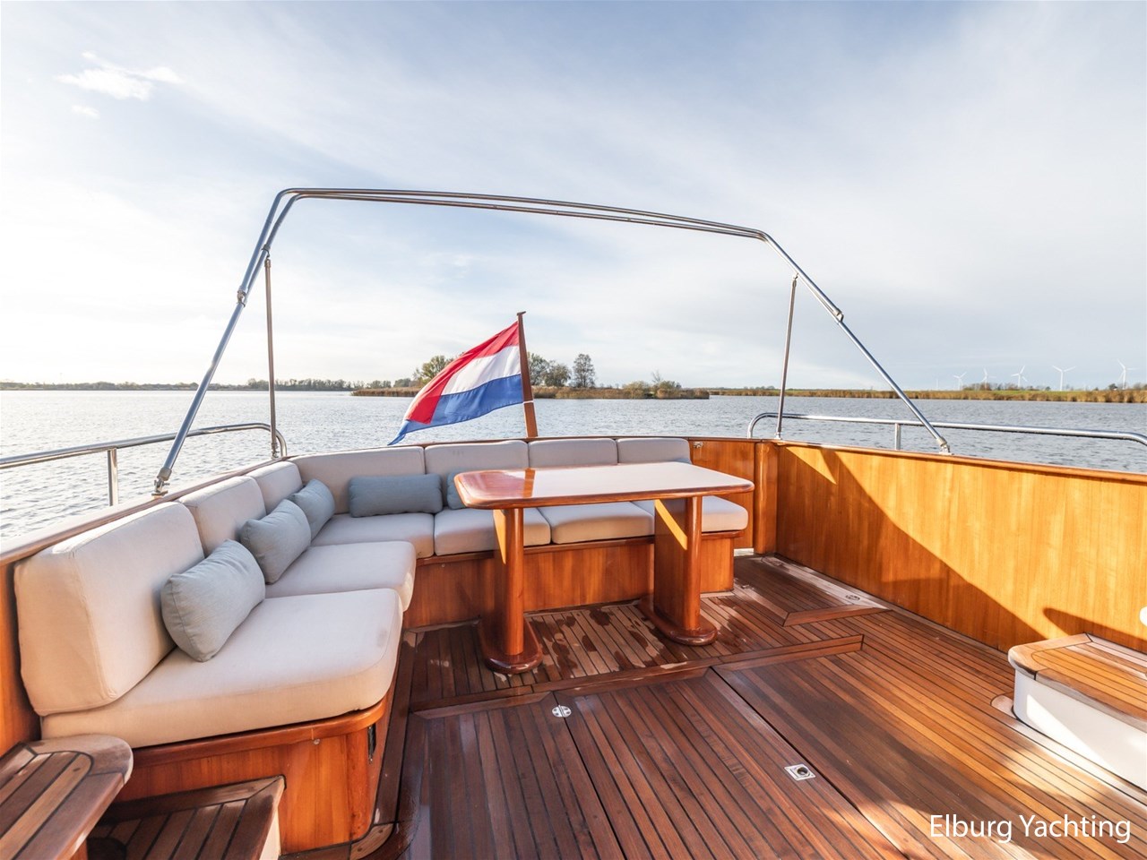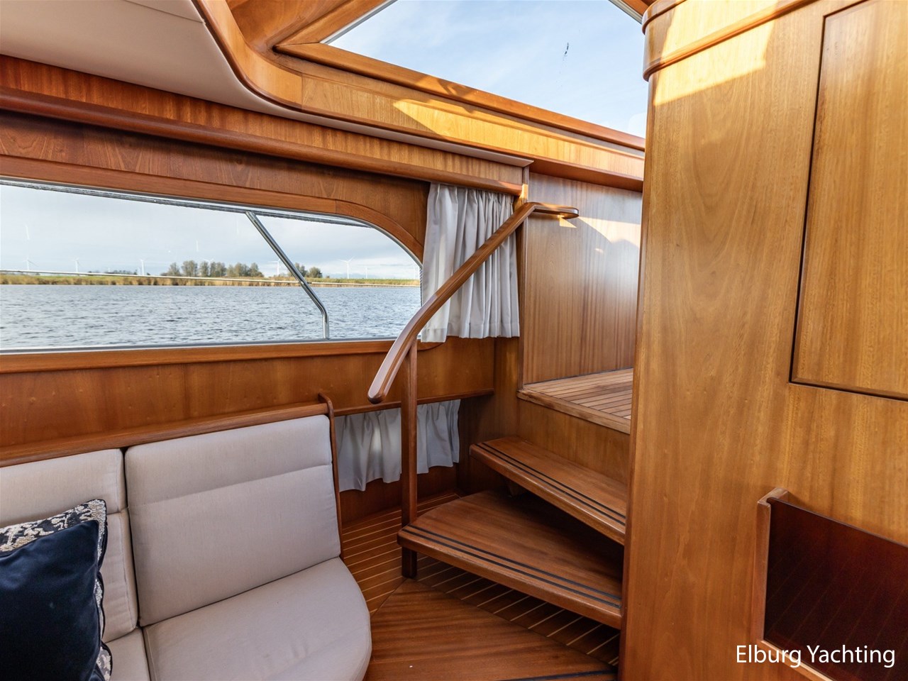 De Mulder Favorite 46 is een elegant en degelijk motorjacht, ontworpen door Guido de Groot en gebouwd door de gerenommeerde werf Mulder Shipyard. Dit jacht straalt tijdloze klasse uit en is ontworpen voor comfortabel en stijlvol verblijf aan boord. De ruime open kuip staat in directe verbinding met de salon en het stuurhuis, wat zorgt voor een open en lichte leefruimte. Het interieur is klassiek uitgevoerd in mahoniehout en voorzien van lichte, recent vernieuwde stoffering. Dankzij de twee hutten, elk met eigen sanitair, is het schip uitstekend geschikt voor langer verblijf aan boord. Tussen 2021 en 2025 is er breed geïnvesteerd in techniek, afwerking en uitrusting. Het teakdek is in 2023-2024 volledig vernieuwd door Jonker Jachtbouw.