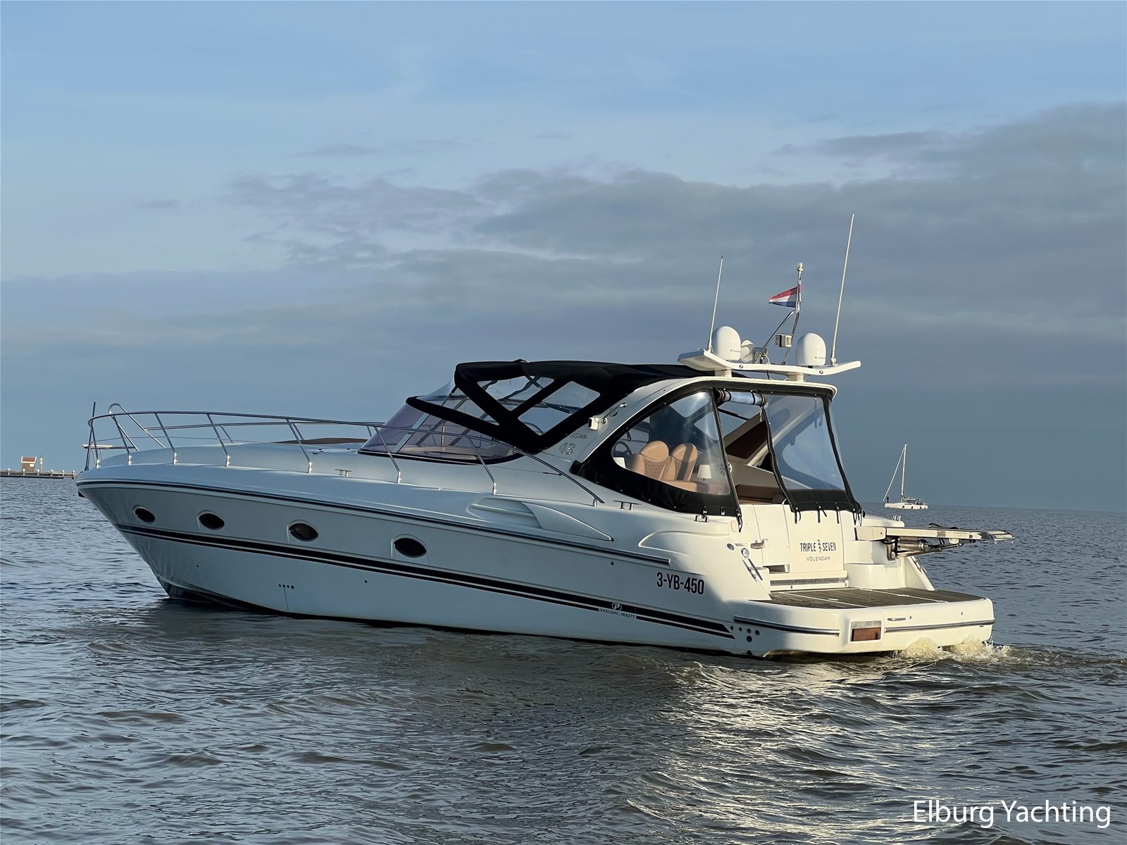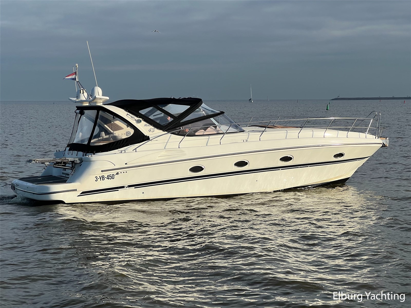 Italiaans design in combinatie met veel praktische ruimte kenmerkt deze Mira 43 van de werf Innovazione e Progetti uit Italie. Dit jacht is van bouwjaar 2004 en is voorzien van twee krachtige Volvo Penta D6 motoren met elk 350 pk. De aandrijving verloopt via twee Volvo Penta DPH hekdrives, welke in 2025 zijn geserviced. Deze Mira 43 is voorzien van: Volledige tent rondom kuip met uitristbare delen, hydraulisch uitschuifbare gangway met afstandsbediening, groot bergluik in zwemplateau, kuip voorzien van koelkast / spoelkom / radio met speakers, loop naar het voordek via gangboorden maar ook binnendoor via opstap bij stuurstand, afneembaar zonnebed op het voordek, elektrisch/hydraulisch bedienbaar luik naar machinekamer, diverse 230V aansluitpunten door de boot, TV in salon (2025), tapijt delen in het interieur uitneembaar, 2 x bergluik in salonvloer. Verfsysteem onderwaterschip vernieuwd in juli 2025. Dit schip is op afspraak in Nederland te bezichtigen. Wij maken graag met u een afspraak voor een vrijblijvend bezoek aan boord.
