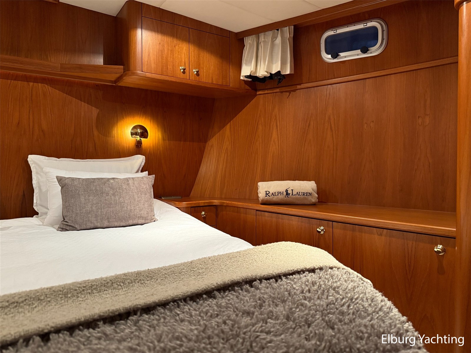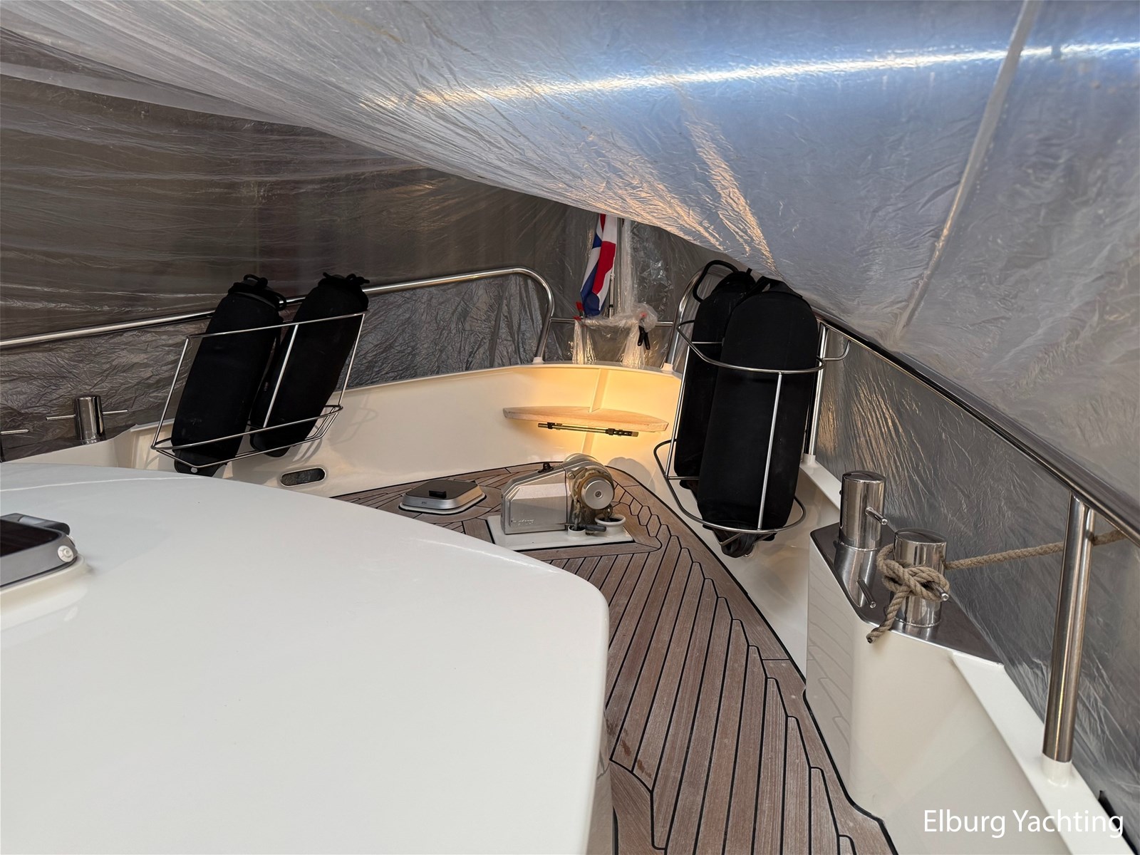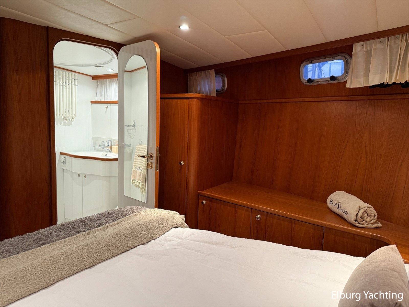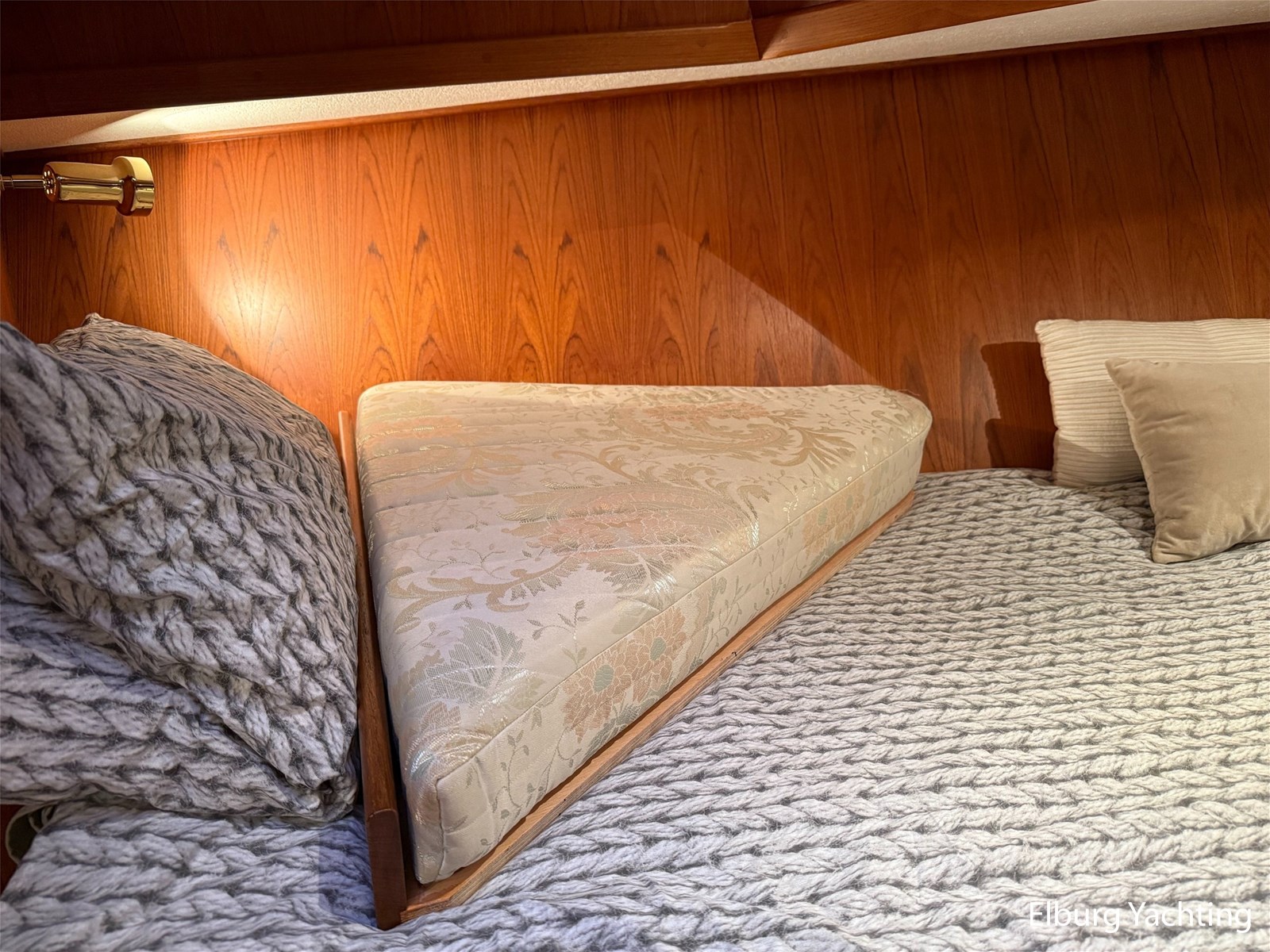 - Hoogwaardig Teakhouten interieur met ronde afwerking en nieuwe grijze stoffering (2024)