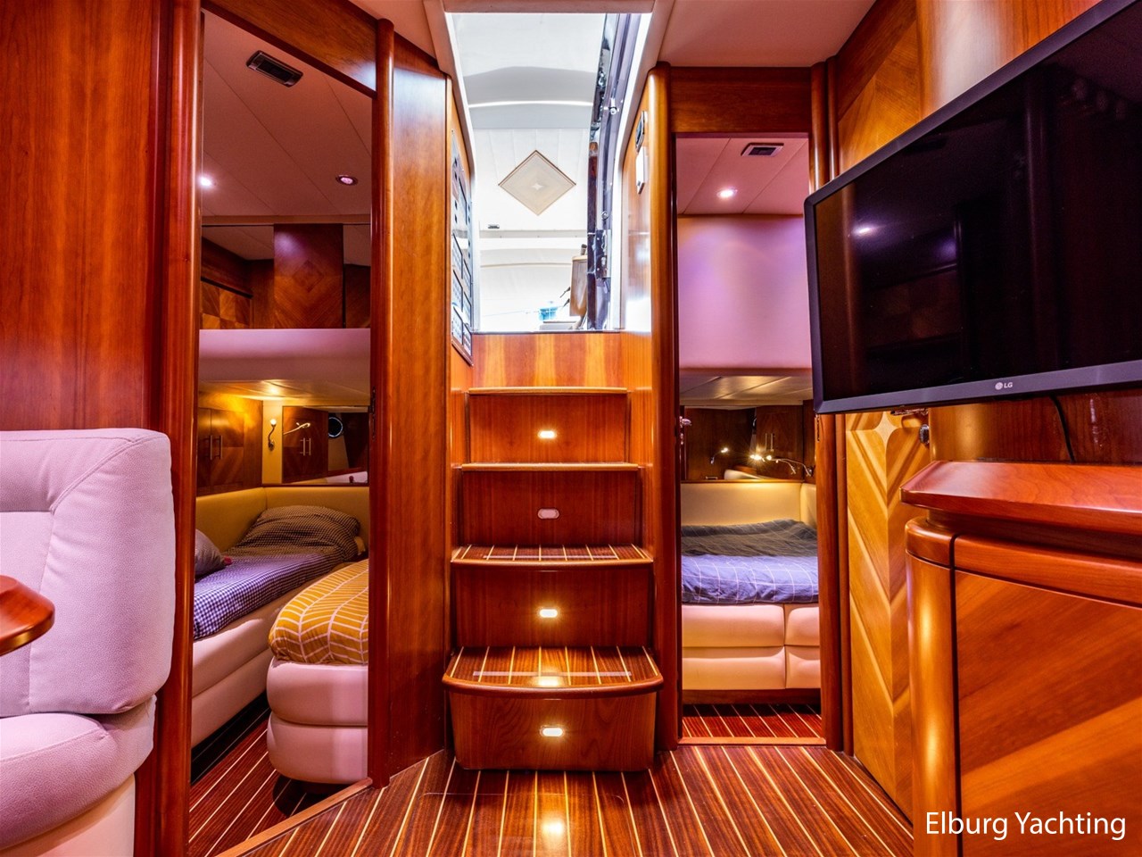 - 6 x vast (1 x 2 pers. frans bed in voorhut + 1 x 2 pers. aan SB-zijde + 2 x 1 BB-zijde)