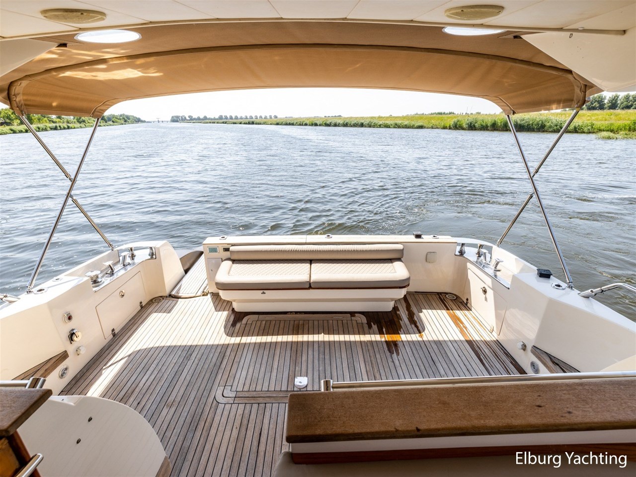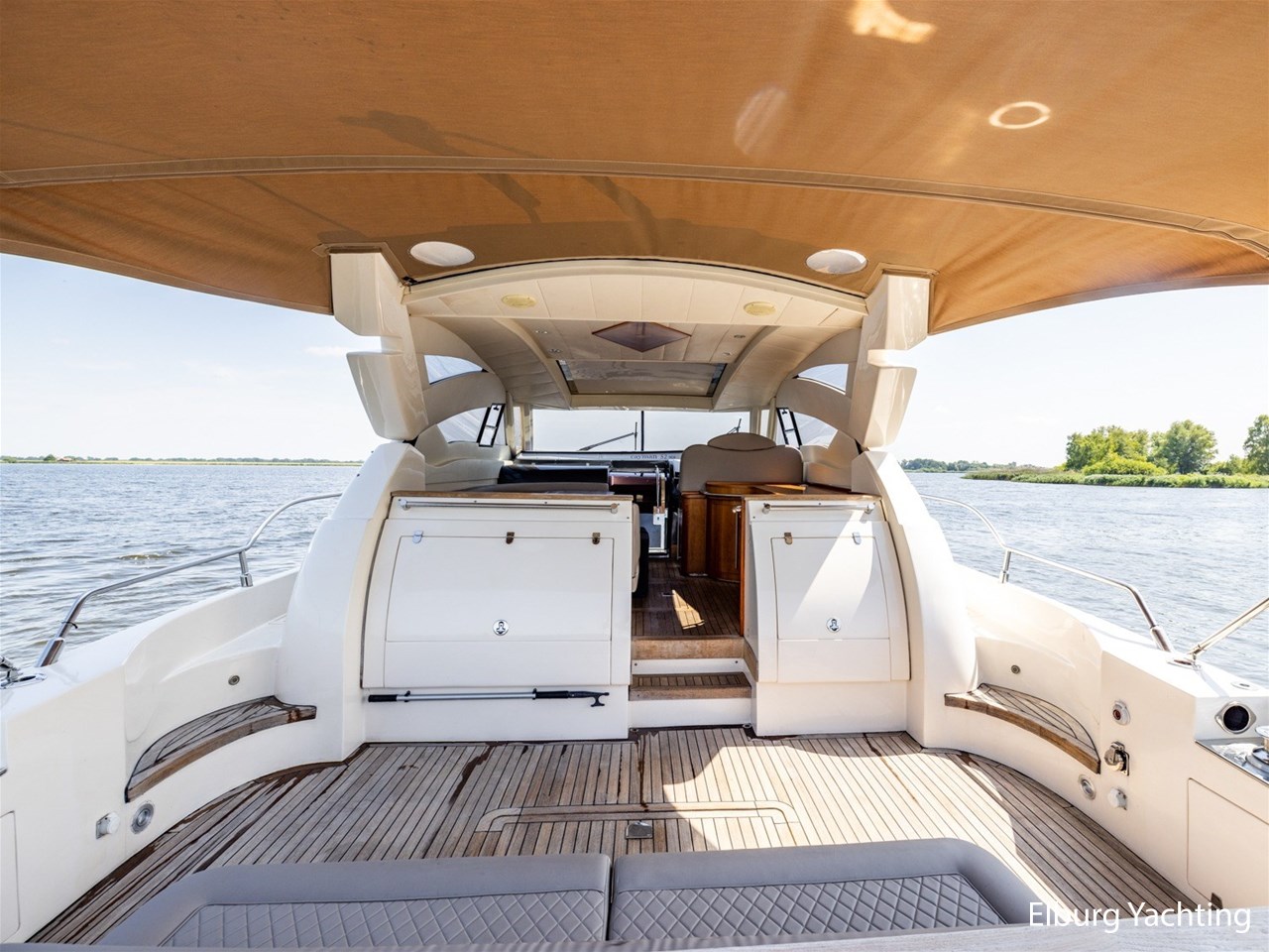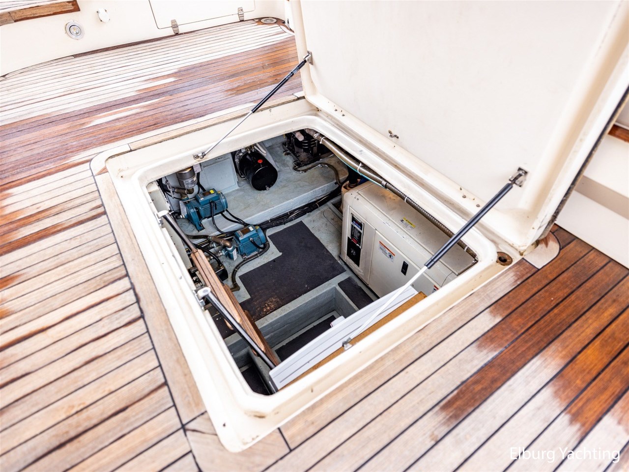 - Antislip op zijdek + teak in open kuip en stuurhuis