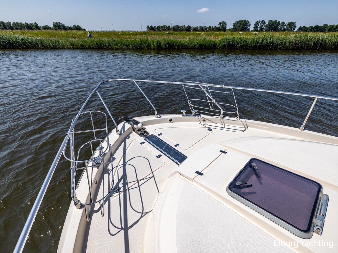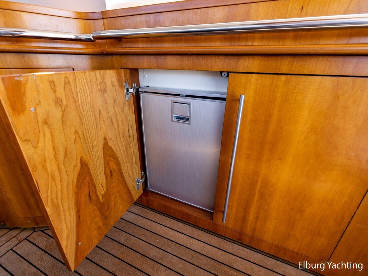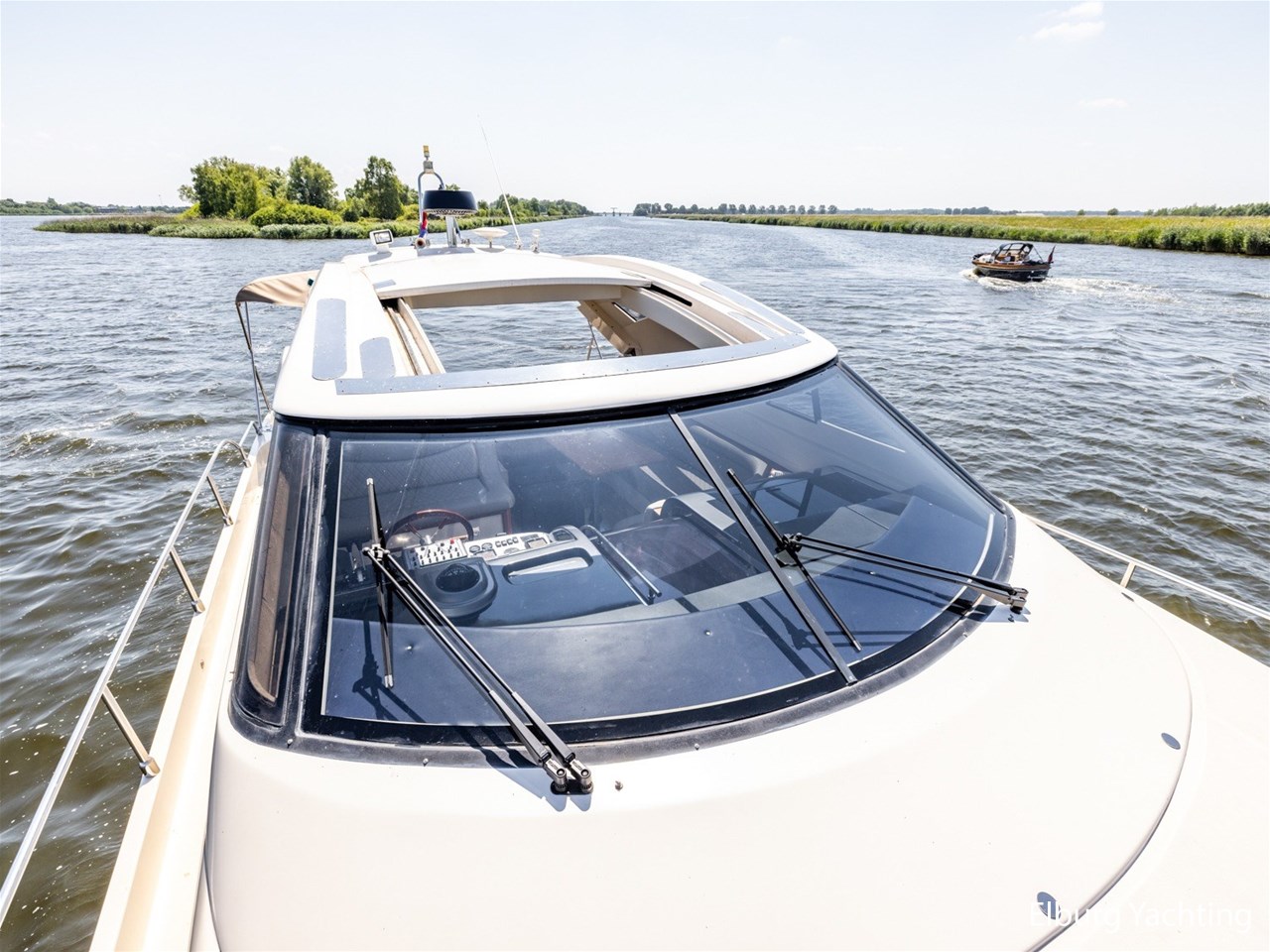 - Antislip op zijdek + teak in open kuip en stuurhuis