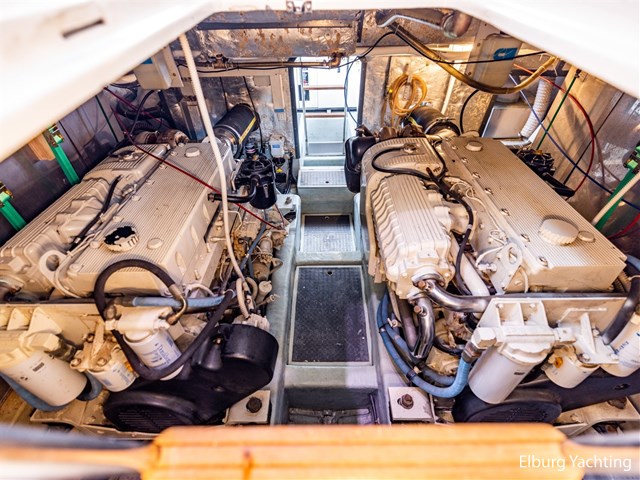 De Cayman 52 Hardtop is een echte sportieve allrounder. Het stuurhuis is volledig af te sluiten met een tent of hor. De stuurstand, wetbar met spoelbak, grill en koelkast, en de ruime U-vormige zitbank bevinden zich allemaal op één niveau. Dankzij het grote elektrische schuifdak haal je het buitengevoel echt naar binnen. De open kuip is ruim opgezet met een vaste bank inclusief bijbehorende kussens. Via een kuipluik is er toegang tot de technische ruimte met extra opbergmogelijkheden. Benedendeks bevinden zich maar liefst drie hutten met maximaal zes slaapplaatsen en twee separate toilet-/douchecabines. Deze Cayman 52 is uitgerust met o.a.: hydraulisch bedienbare gangway op het achterdek, bijbootbeugel en lanceerinstallatie, biminitop over het achterdek, kuipverlichting, r.v.s. fenderhouders, twee opbergluiken in het voordek, groot zonnebed voorop, hoge r.v.s. reling rondom, hoogwaardig houten Italiaans interieur, goed bereikbare techniek, tanks met mangaten, trimtabs, Philips HUE-verlichting in het interieur, en trawling mode (snelheidsbegrenzer bij stationair lopen). Verder is er recent een hekschroef geplaatst en zijn de lenspomp, het afdekzeil (2024) en de serviceaccu’s vernieuwd.