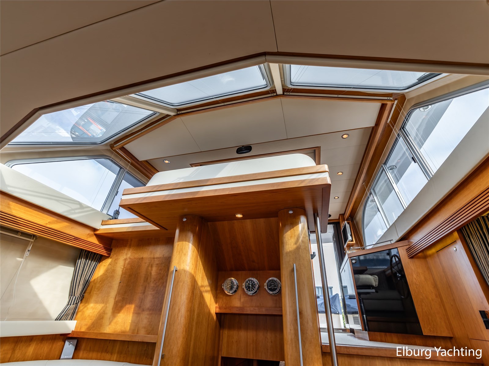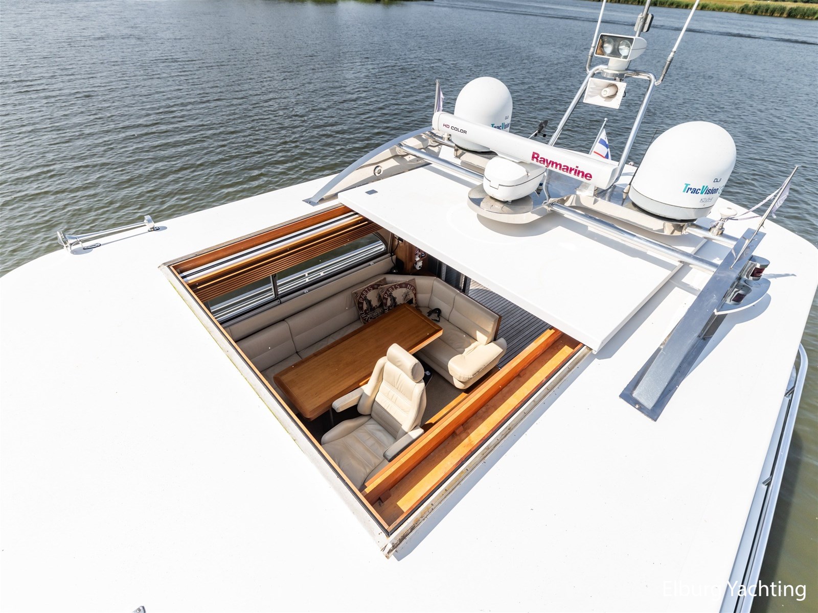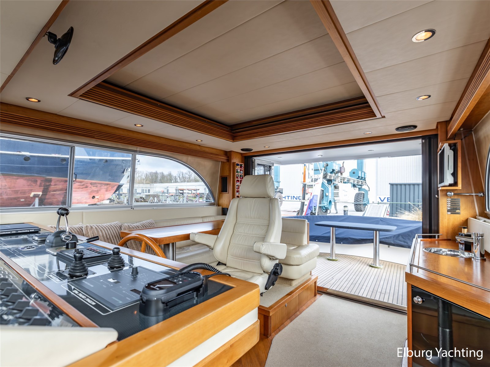 De stuurhut is bovendien zeer compleet uitgerust: onder andere met Autopilot, radar, kaartplotter, camerasysteem, elektrisch zoeklicht, Hydronautica-afstandsbediening voor motor, boeg- en hekschroef, ruitenwissers met intervalstand, marifoon en andere accessoires. Alles is aanwezig voor ontspannen én veilig varen, ongeacht het vaargebied.