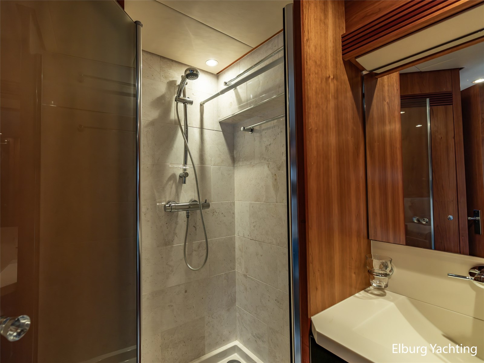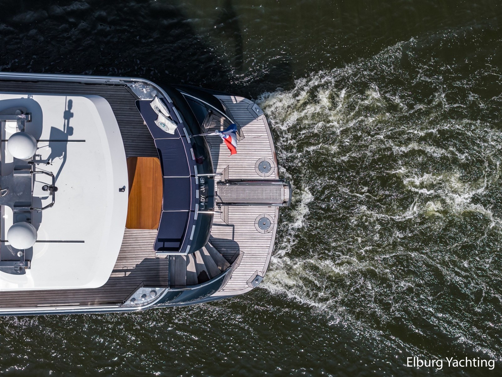 Ook buitenom is het comfort volledig doorgevoerd. Het schip beschikt over een teakdek rondom en een groot zwemplateau met geïntegreerde gangway en verlichting. Een luie trap vanaf het achterdek maakt de toegang tot het zwemplateau extra comfortabel.