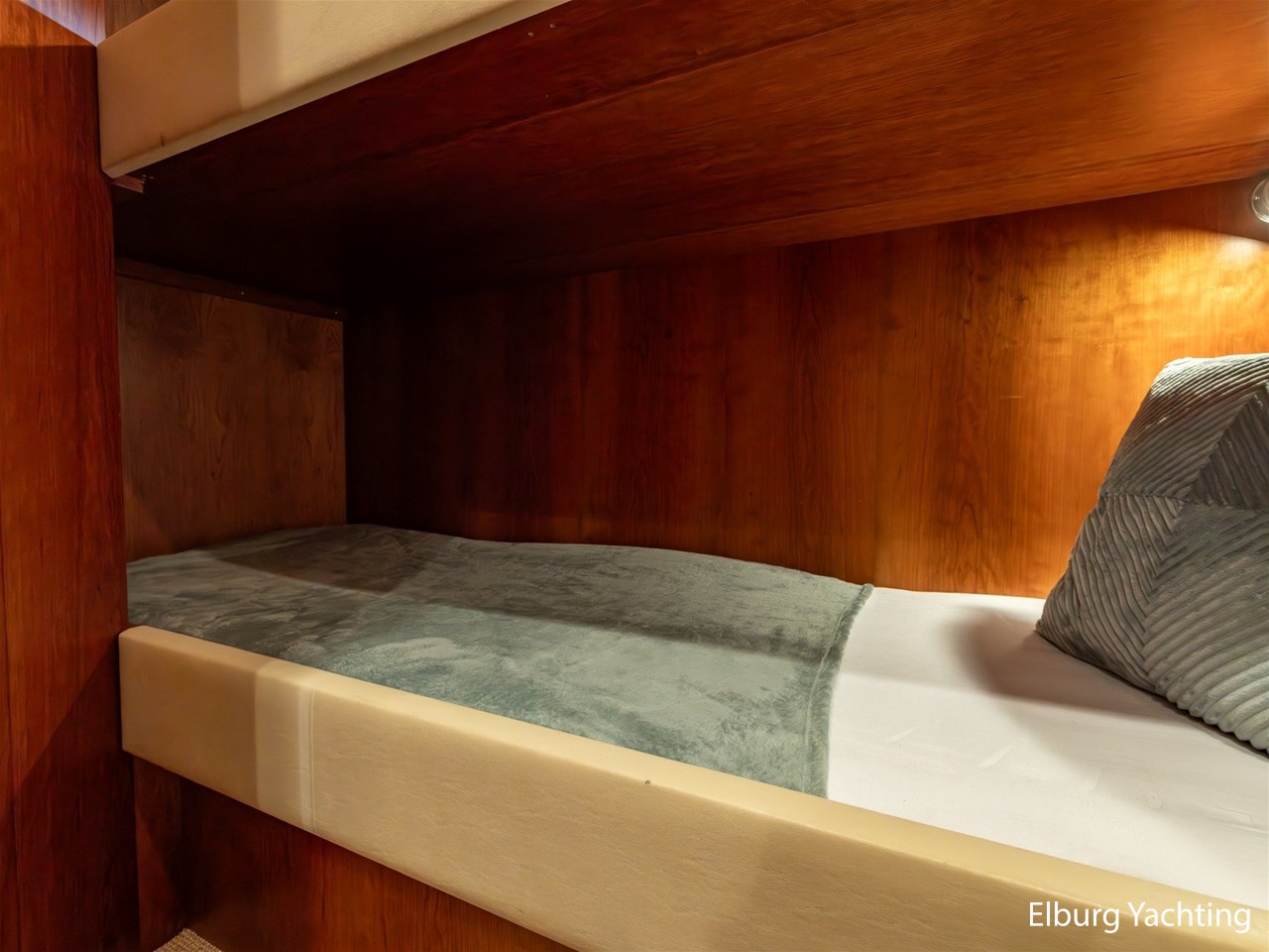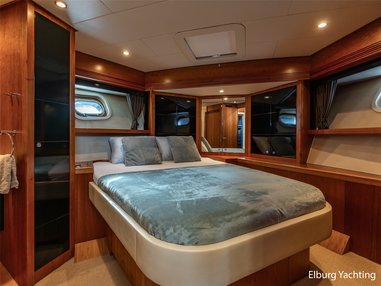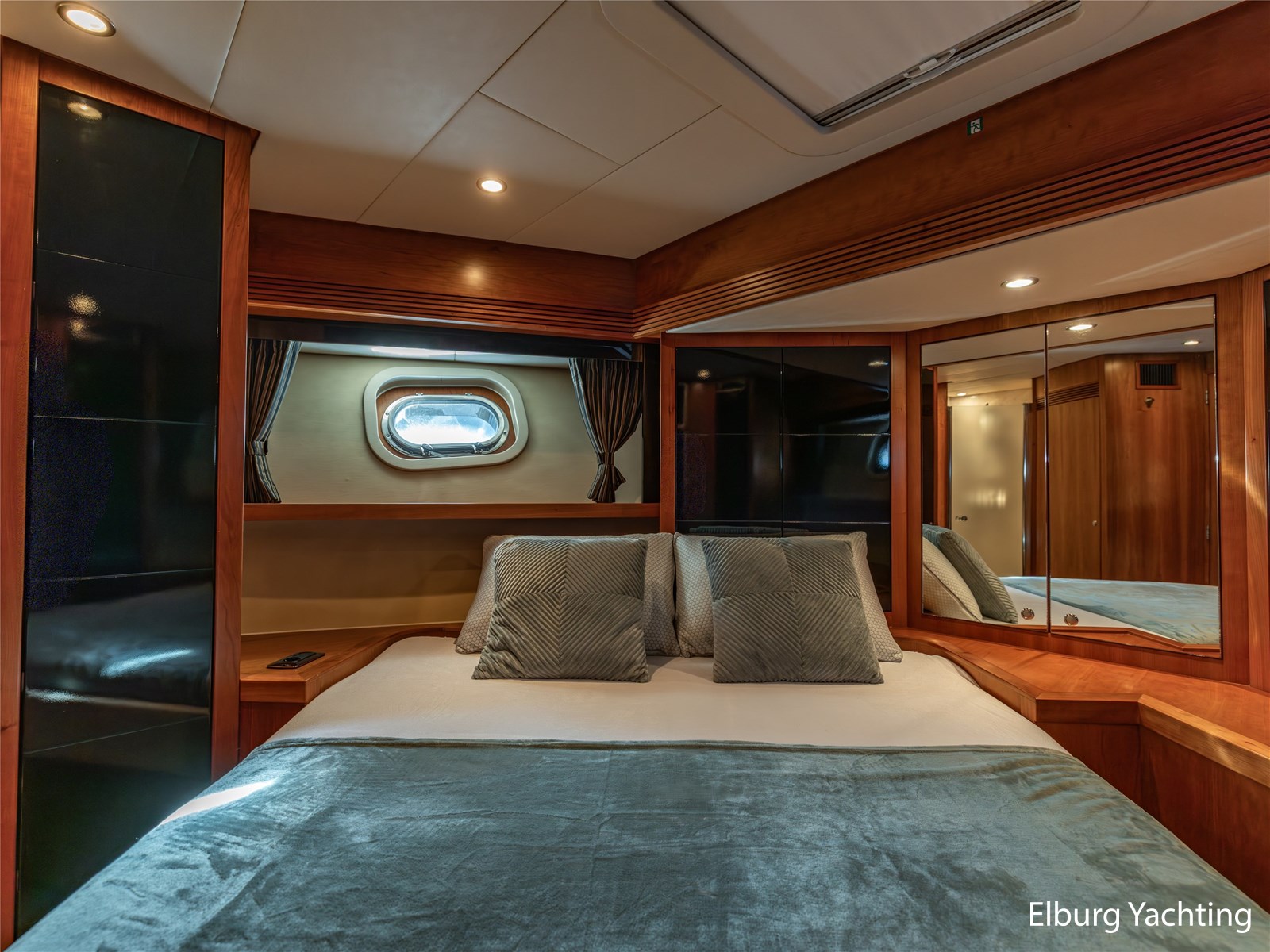 De eigenaarshut achterin is bijzonder royaal en beslaat de volle breedte van het jacht. Deze luxe 'full beam' master cabin beschikt over een vrijstaand tweepersoonsbed, een badkamer en suite, ruime kastopstelling en een sfeervolle afwerking.