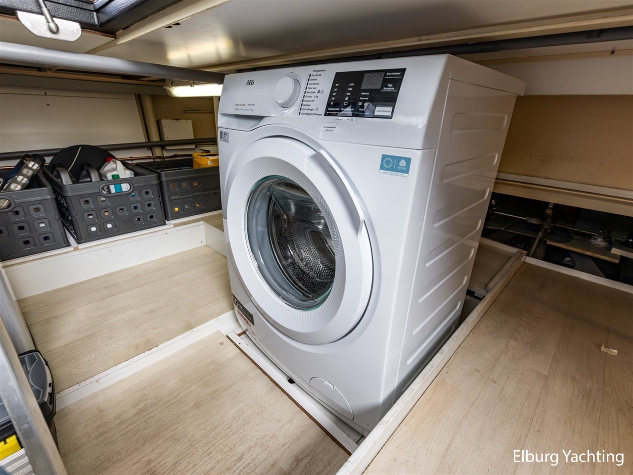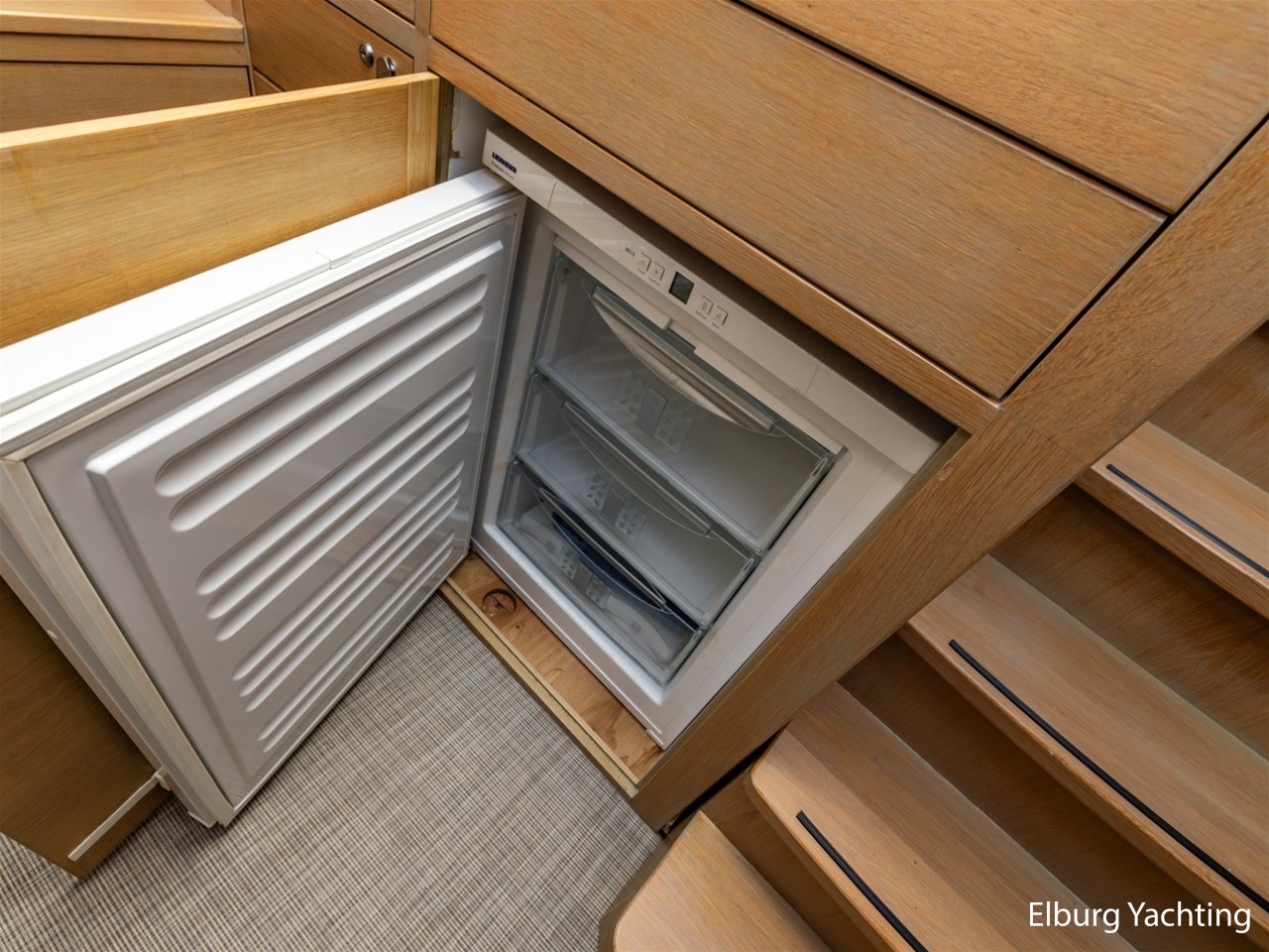 - Koelkast in kombuis + vriezer met 3 lades aan boord