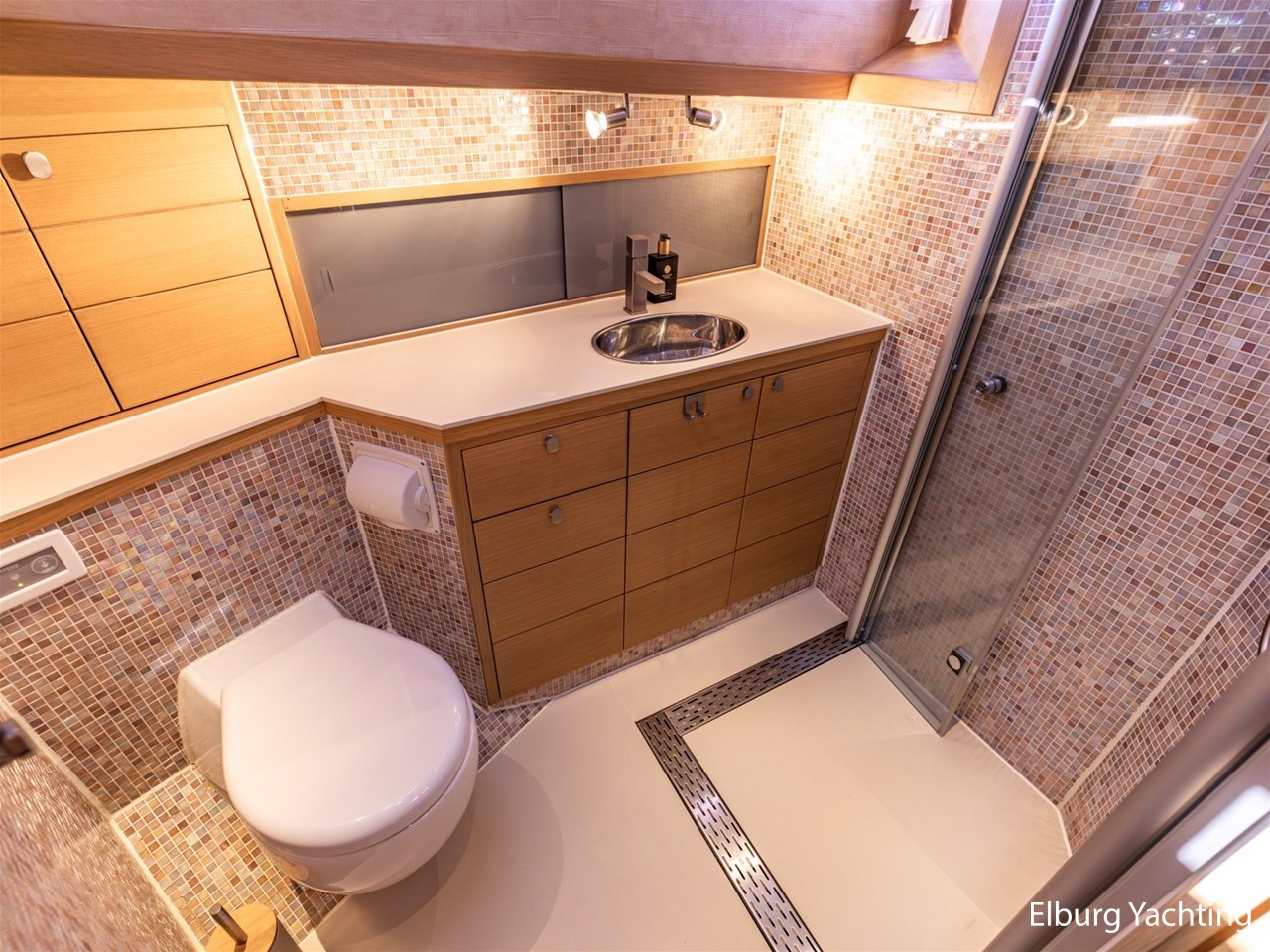 - Geïntegreerd met teak + toegang tot extra bergruimte