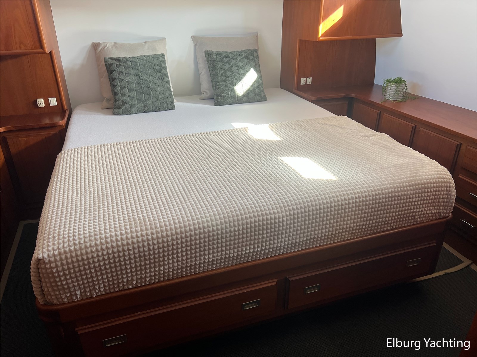 - 6 x vast (1 x 2 pers. vrijstaand bed in achterhut + 2 x 1 pers. stapelbed in voorschip BB-zijde + 2 x 1 pers. stapel bed in voorschip SB-zijde)