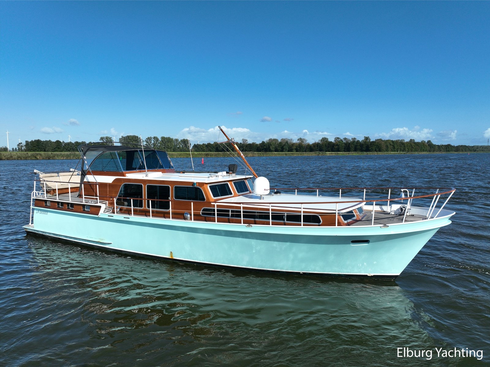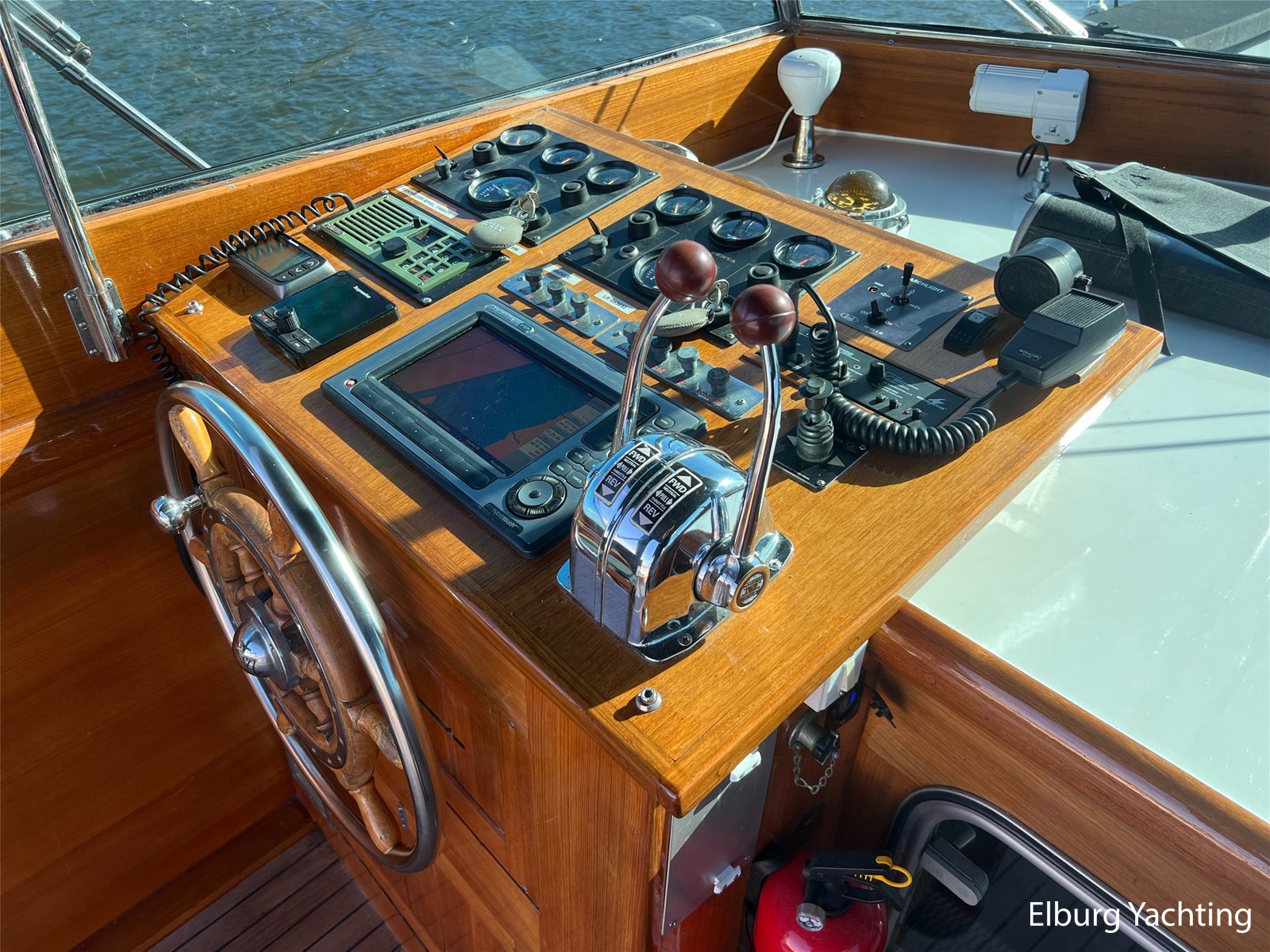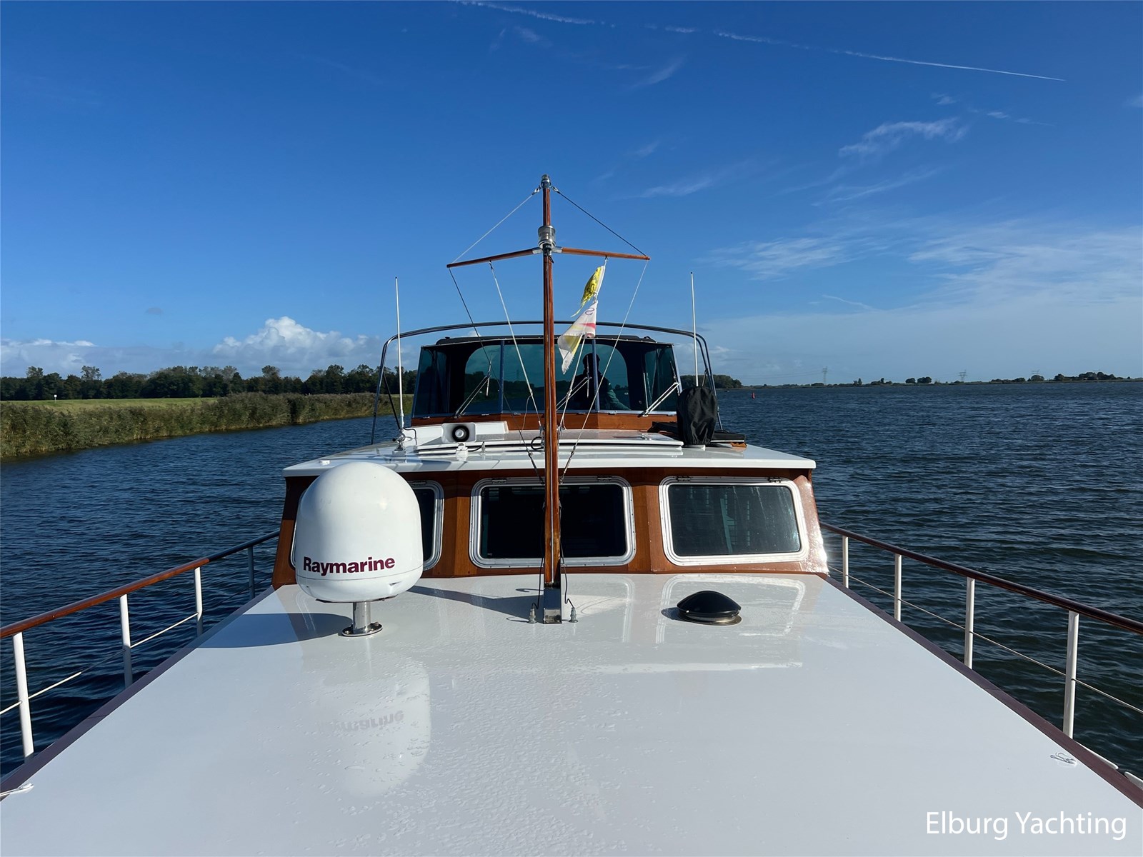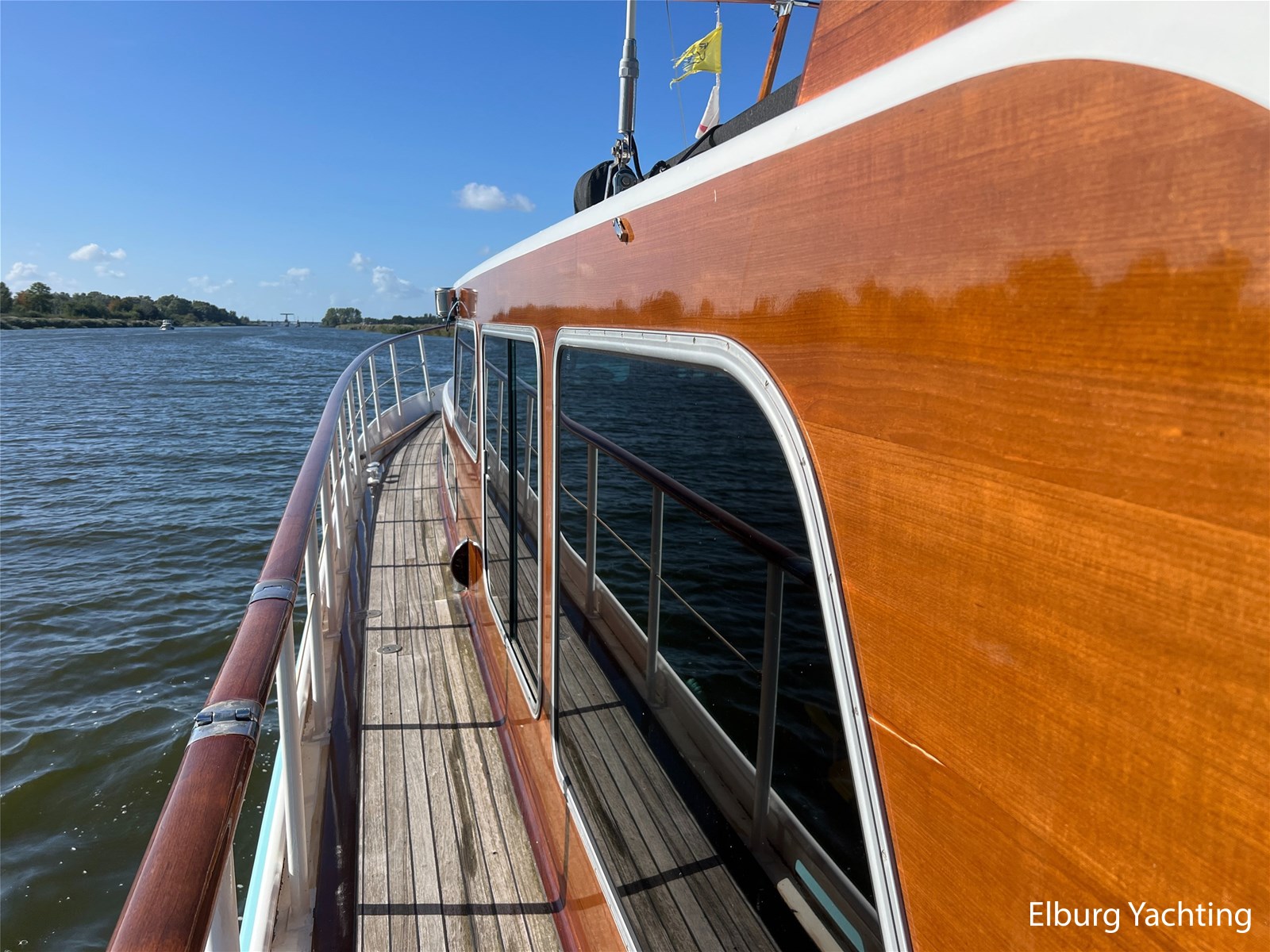 Deze bijzondere Super van Craft is met haar unieke kleurstelling een prachtige klassieke verschijning op het water. Het schip heeft een ruim achterdek met een grote (zomer) bimini en de mogelijkheid om beschut te varen achter de cabrio kap van de stuurstand. De salon is groot genoeg om naast de captain chair met ca. 6 personen plaats te nemen aan de tafel. De laatste jaren is er veel geïnvesteerd om deze Super van Craft weer in een mooie conditie te krijgen, maar er zijn nog klussen aan boord om af te ronden. Het schip is uitgevoerd met: Eigenaarshut met groot vrijstaand bed, grote bimini over achterdek, Sunbrella afdekhoezen voor o.a (bank op achterdek, loopplank, ankerlier), machinekamer geschilderd in 2022 + motoren geschilderd, dynamo's gereviseerd en nieuwe uitlaatdempers geplaatst in 2022, granieten aanrechtblad in keuken met Franke r.v.s. spoelbak, nieuw plafond in keuken met dimbare LED spots, Siemens vaatwasser, zwarte lamellen voor alle ramen in salon, vernieuwde badkamer in eigenaarshut met o.a nieuwe wasbak, nieuwe kraan, nieuwe marmeren topblad, houten opbouw en potdeksels in 2022 volledig kaal gehaald en opnieuw opgebouwd, Jabsco schijnwerper, in 2022 salon dak opnieuw geschilderd, alle chrome details zijn opnieuw verchroomd in 2022, generator vervangen voor een gebruikte Onan 4kW model in 2024, AIS met zichtbaarheid op het plotterscherm. Het teak dek op het schip is nog een punt van aandacht waar de volgende eigenaar mee aan de slag kan. Het is een zeer ruim opgezette Super van Craft met 3 hutten en 2 badkamers.