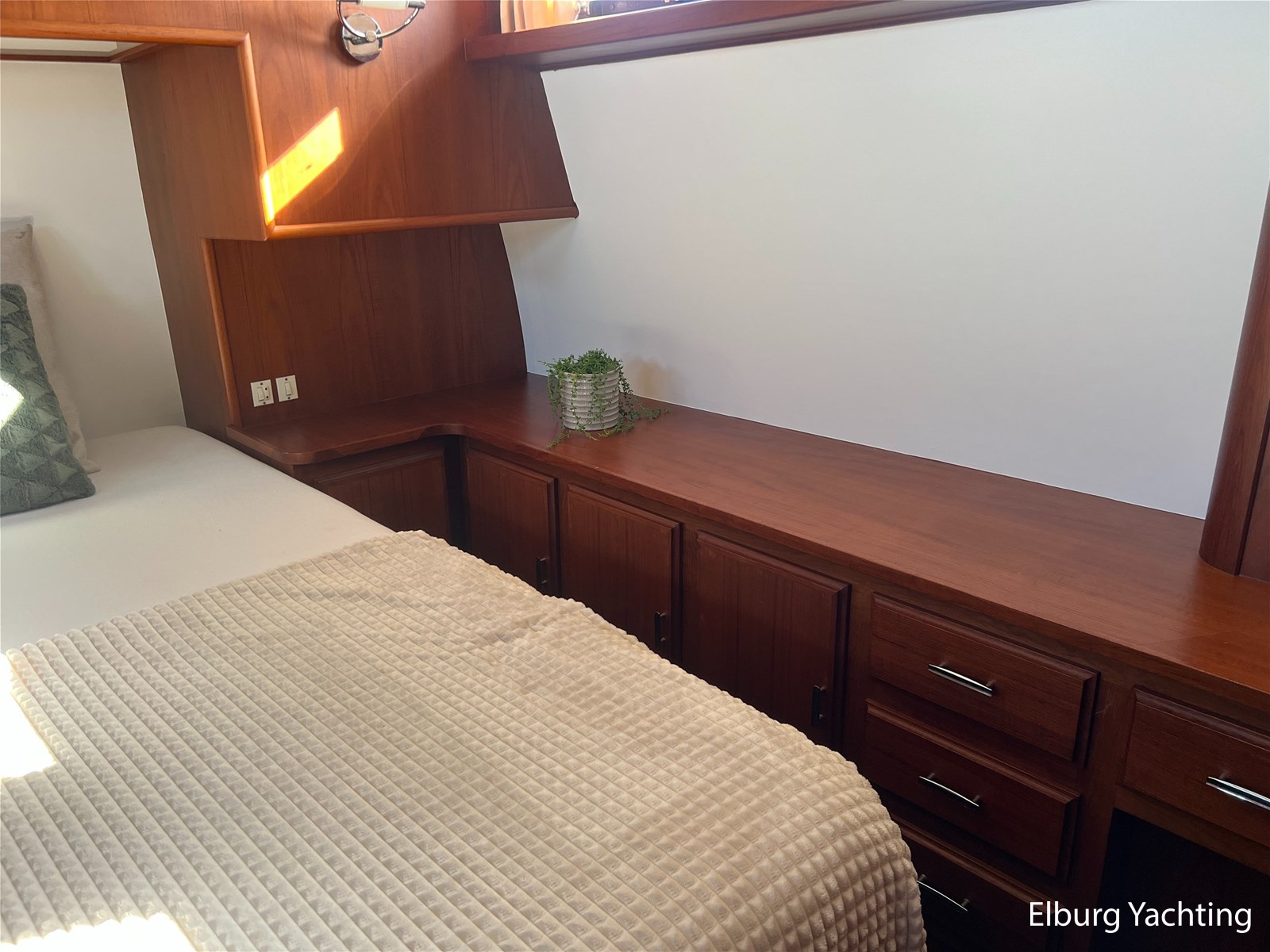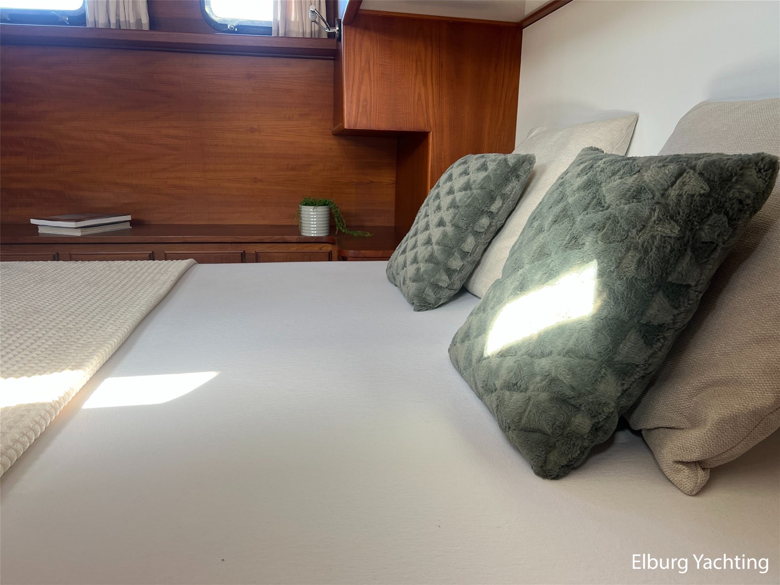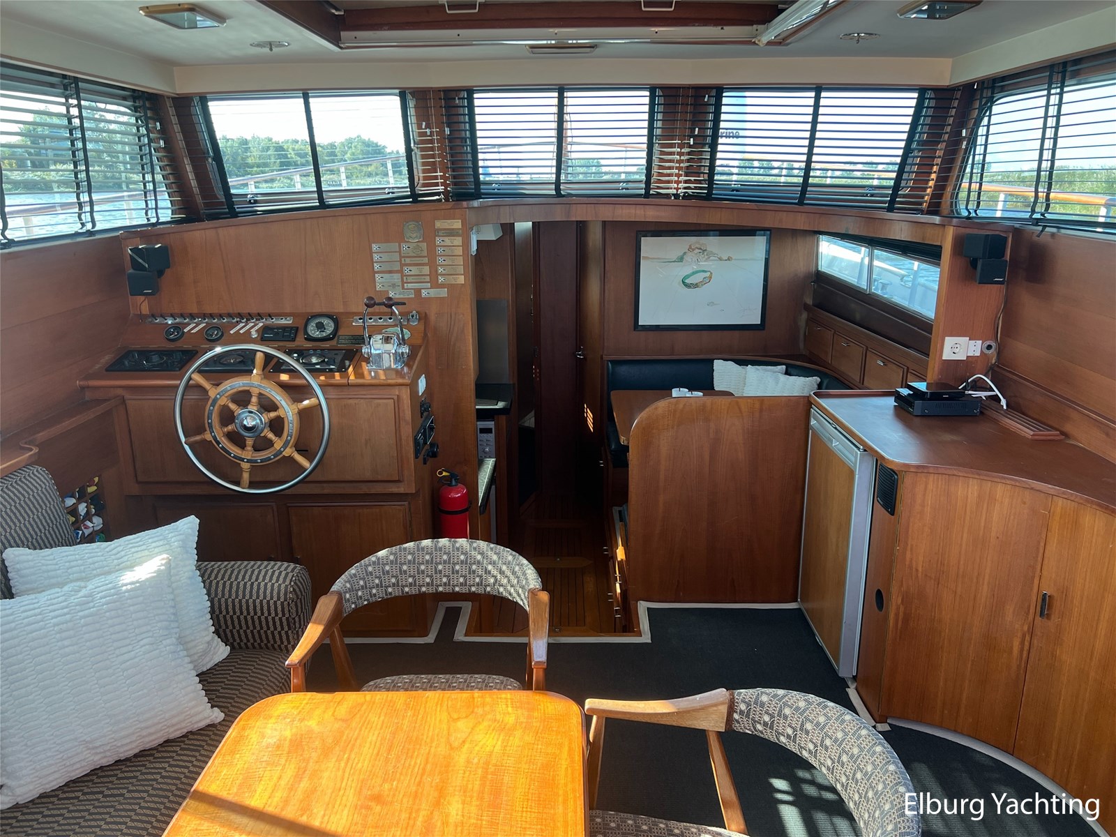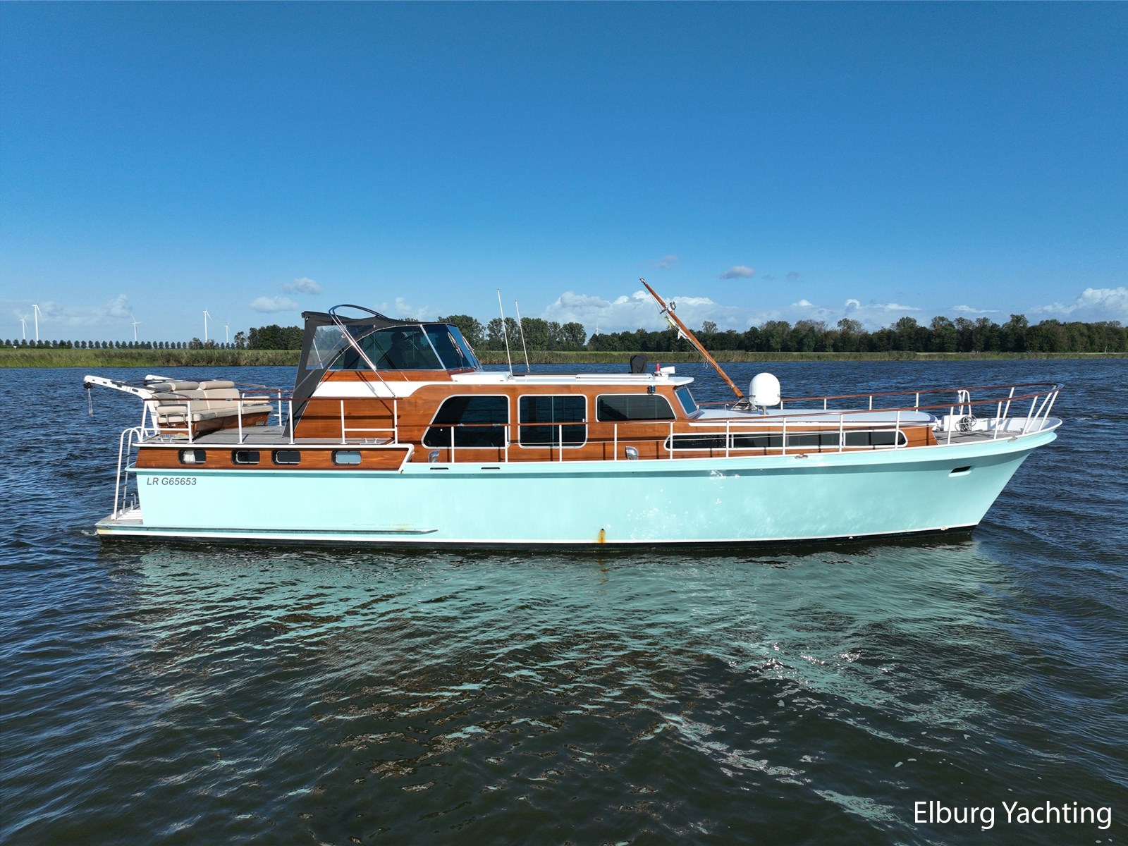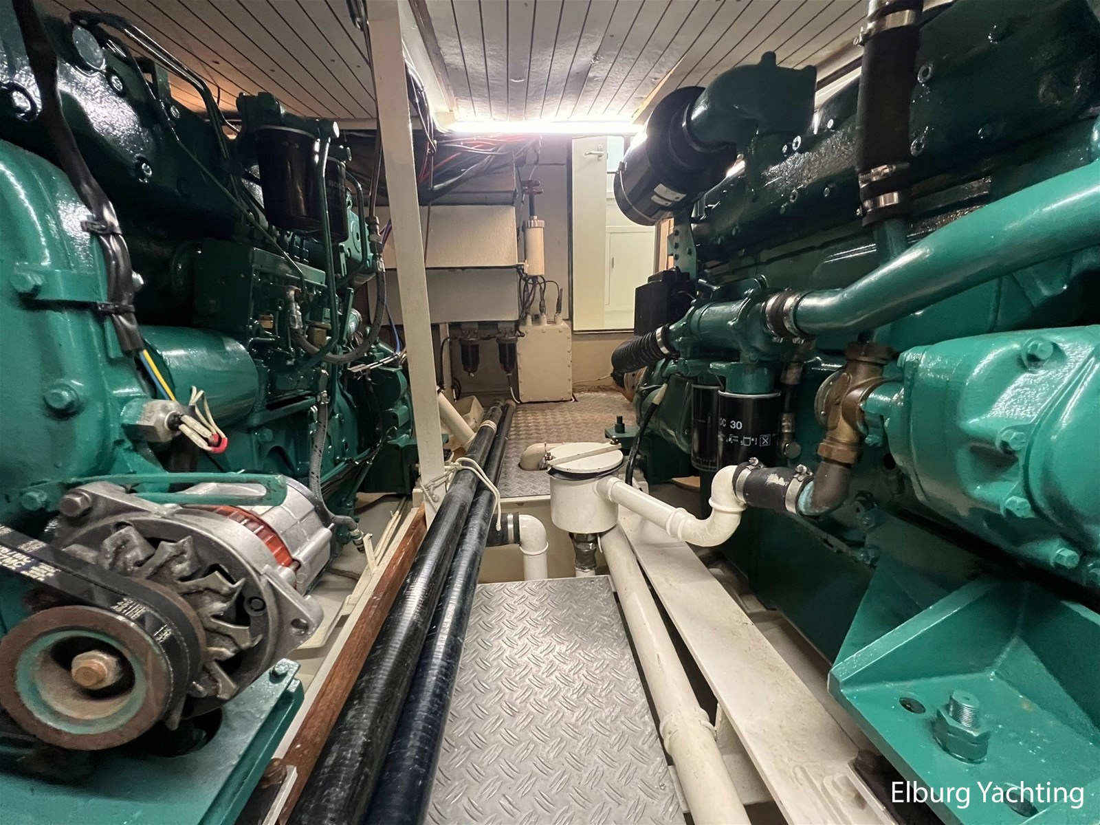 Deze bijzondere Super van Craft is met haar unieke kleurstelling een prachtige klassieke verschijning op het water. Het schip heeft een ruim achterdek met een grote (zomer) bimini en de mogelijkheid om beschut te varen achter de cabrio kap van de stuurstand. De salon is groot genoeg om naast de captain chair met ca. 6 personen plaats te nemen aan de tafel. De laatste jaren is er veel geïnvesteerd om deze Super van Craft weer in een mooie conditie te krijgen, maar er zijn nog klussen aan boord om af te ronden. Het schip is uitgevoerd met: Eigenaarshut met groot vrijstaand bed, grote bimini over achterdek, Sunbrella afdekhoezen voor o.a (bank op achterdek, loopplank, ankerlier), machinekamer geschilderd in 2022 + motoren geschilderd, dynamo's gereviseerd en nieuwe uitlaatdempers geplaatst in 2022, granieten aanrechtblad in keuken met Franke r.v.s. spoelbak, nieuw plafond in keuken met dimbare LED spots, Siemens vaatwasser, zwarte lamellen voor alle ramen in salon, vernieuwde badkamer in eigenaarshut met o.a nieuwe wasbak, nieuwe kraan, nieuwe marmeren topblad, houten opbouw en potdeksels in 2022 volledig kaal gehaald en opnieuw opgebouwd, Jabsco schijnwerper, in 2022 salon dak opnieuw geschilderd, alle chrome details zijn opnieuw verchroomd in 2022, generator vervangen voor een gebruikte Onan 4kW model in 2024, AIS met zichtbaarheid op het plotterscherm. Het teak dek op het schip is nog een punt van aandacht waar de volgende eigenaar mee aan de slag kan. Het is een zeer ruim opgezette Super van Craft met 3 hutten en 2 badkamers.