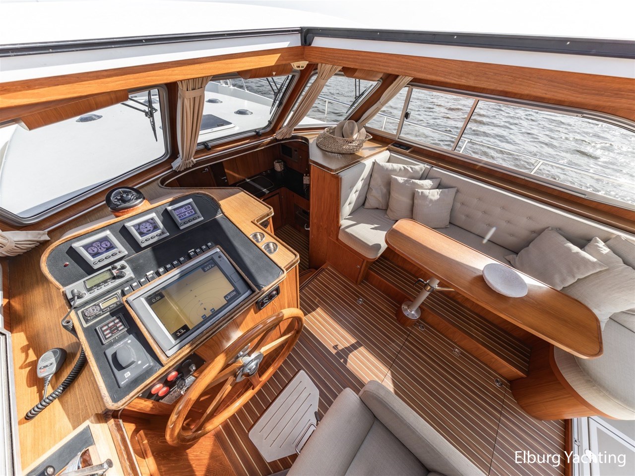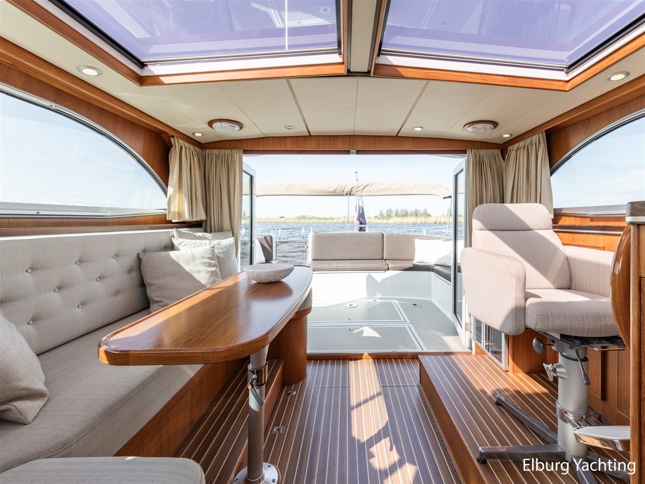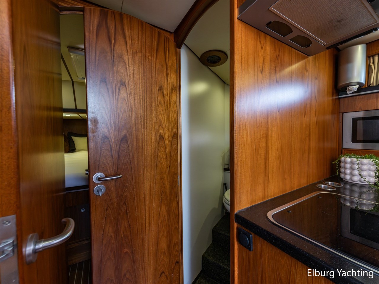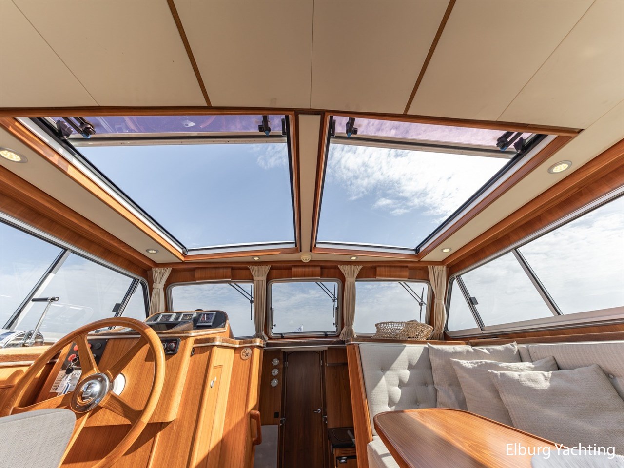 - Teak scheepsinterieur met wengé afwerking en r.v.s. accenten