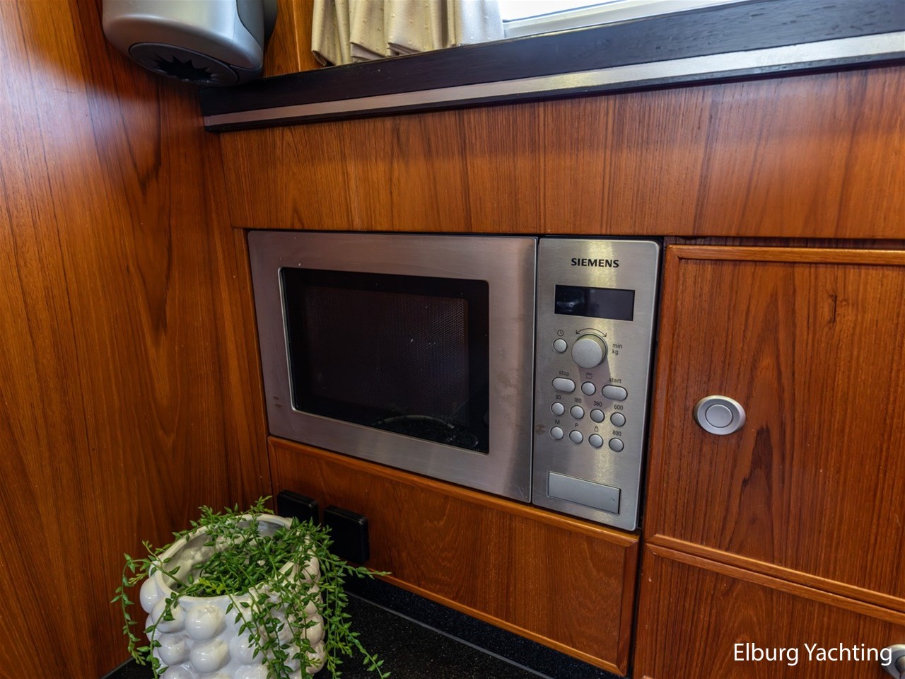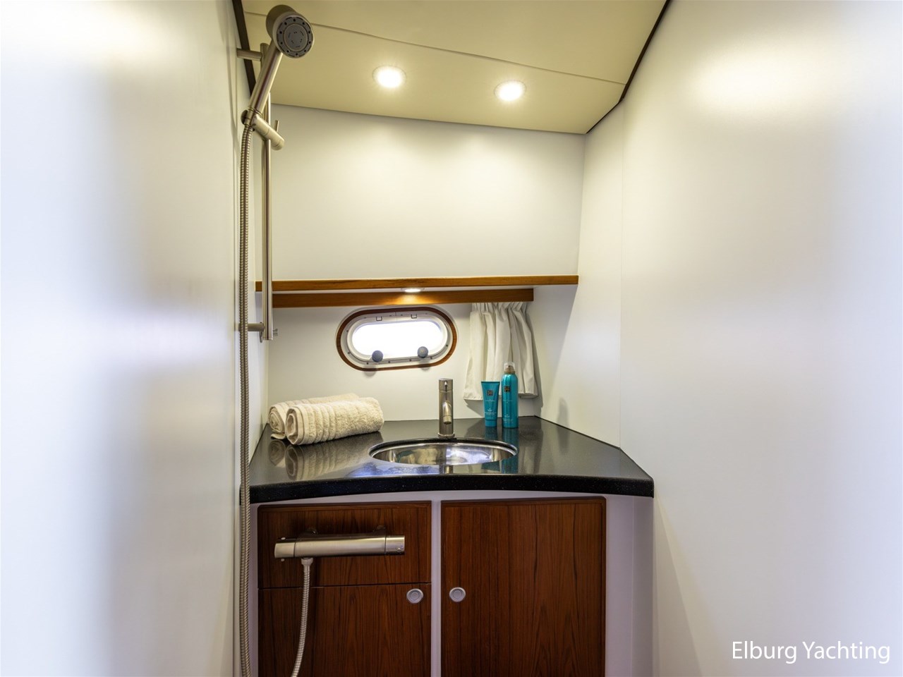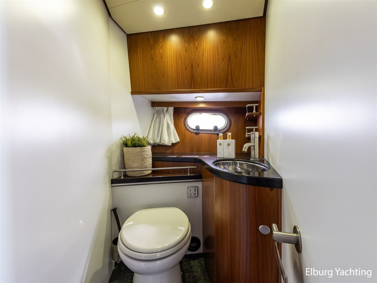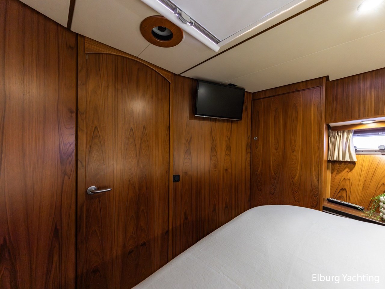 - Teak scheepsinterieur met wengé afwerking en r.v.s. accenten