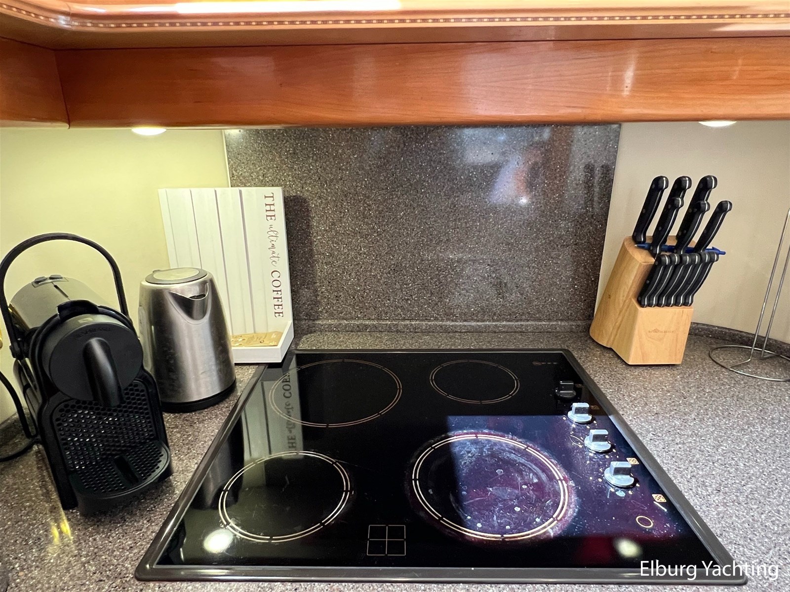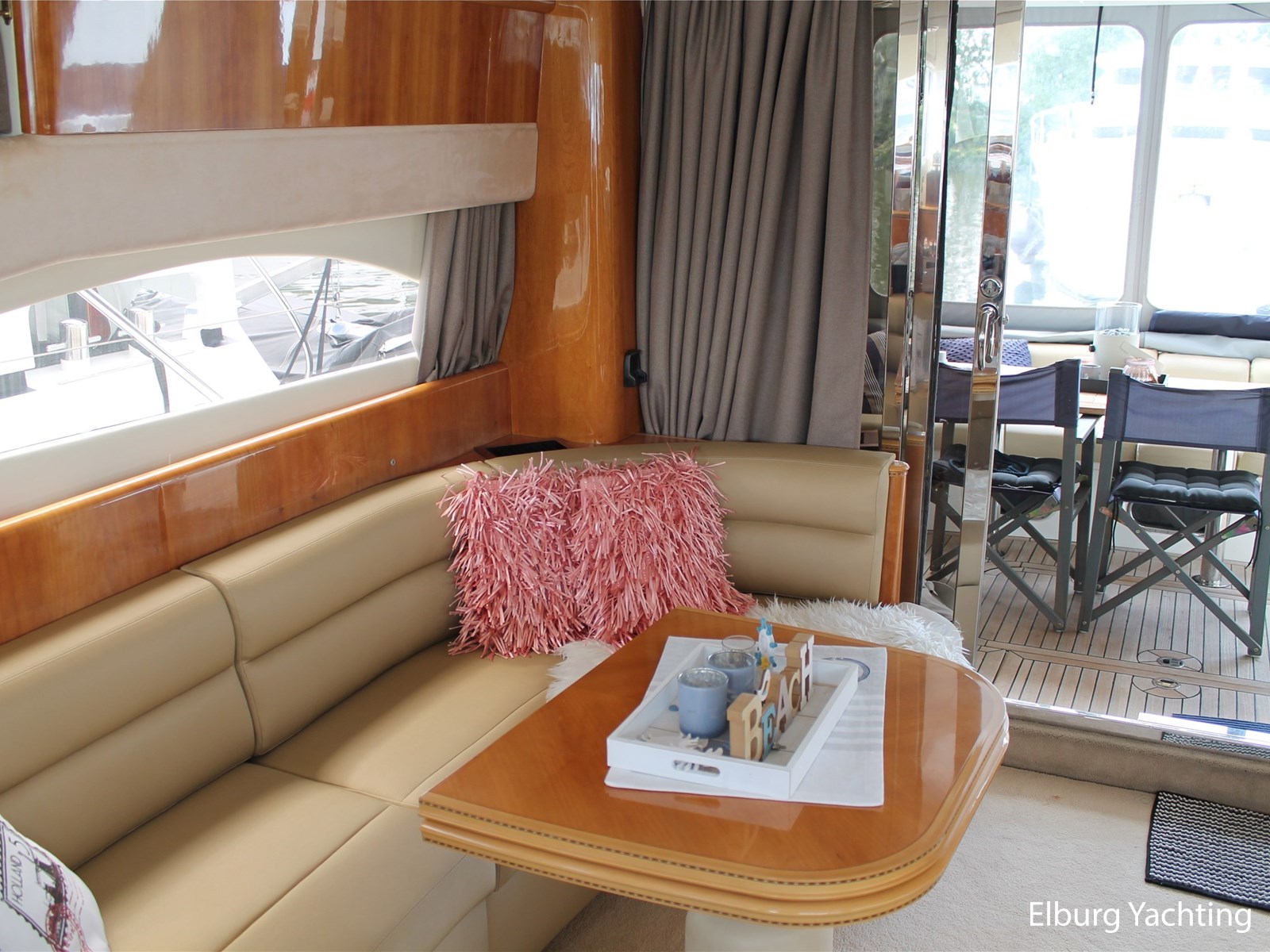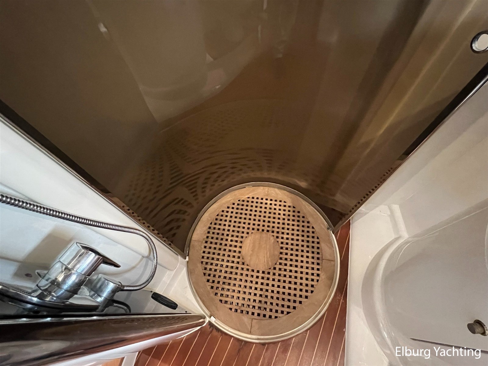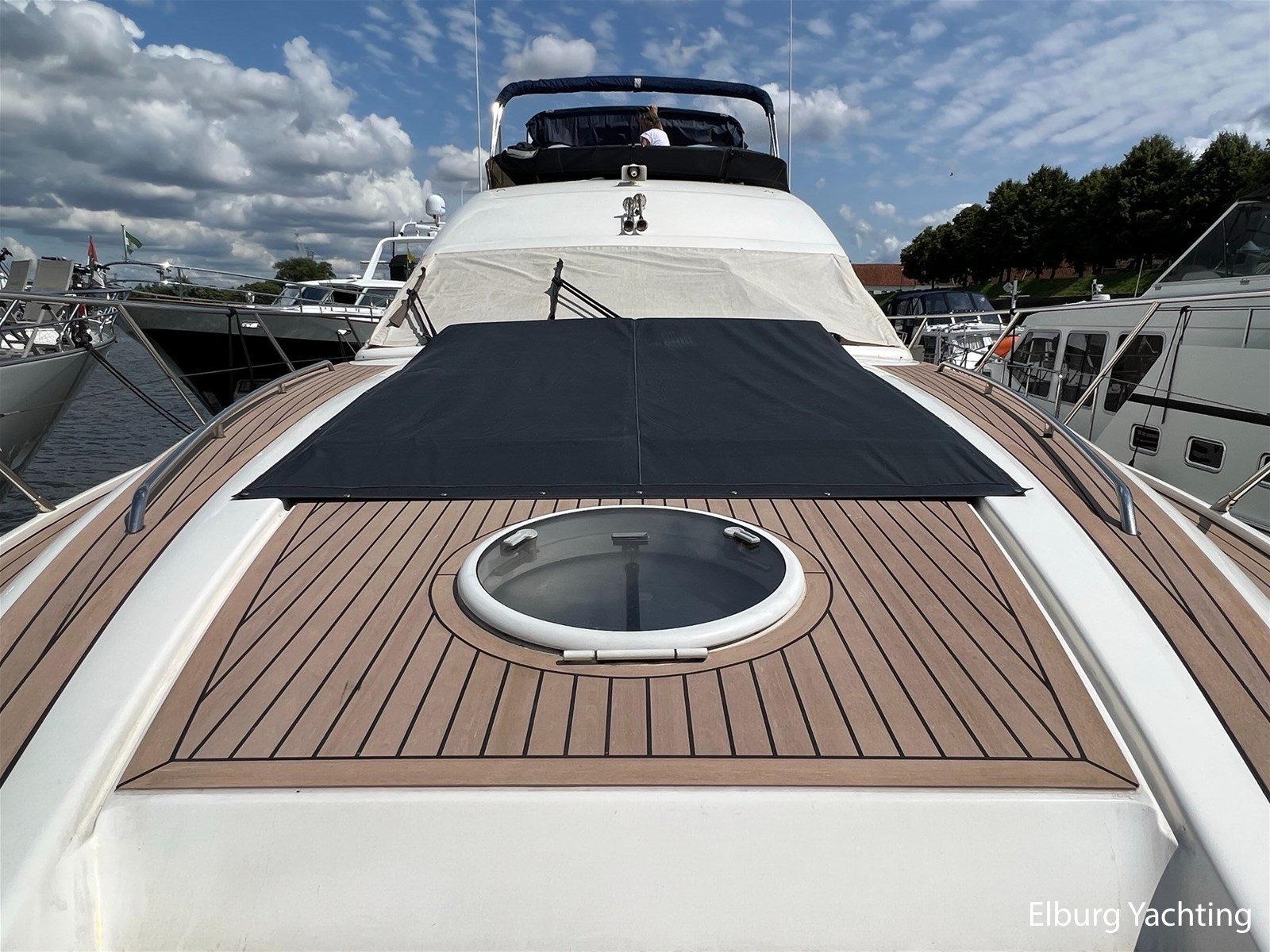 - Flexiteak op flybridge en gangboord (2022), teak hout in openkuip en zwemplateau