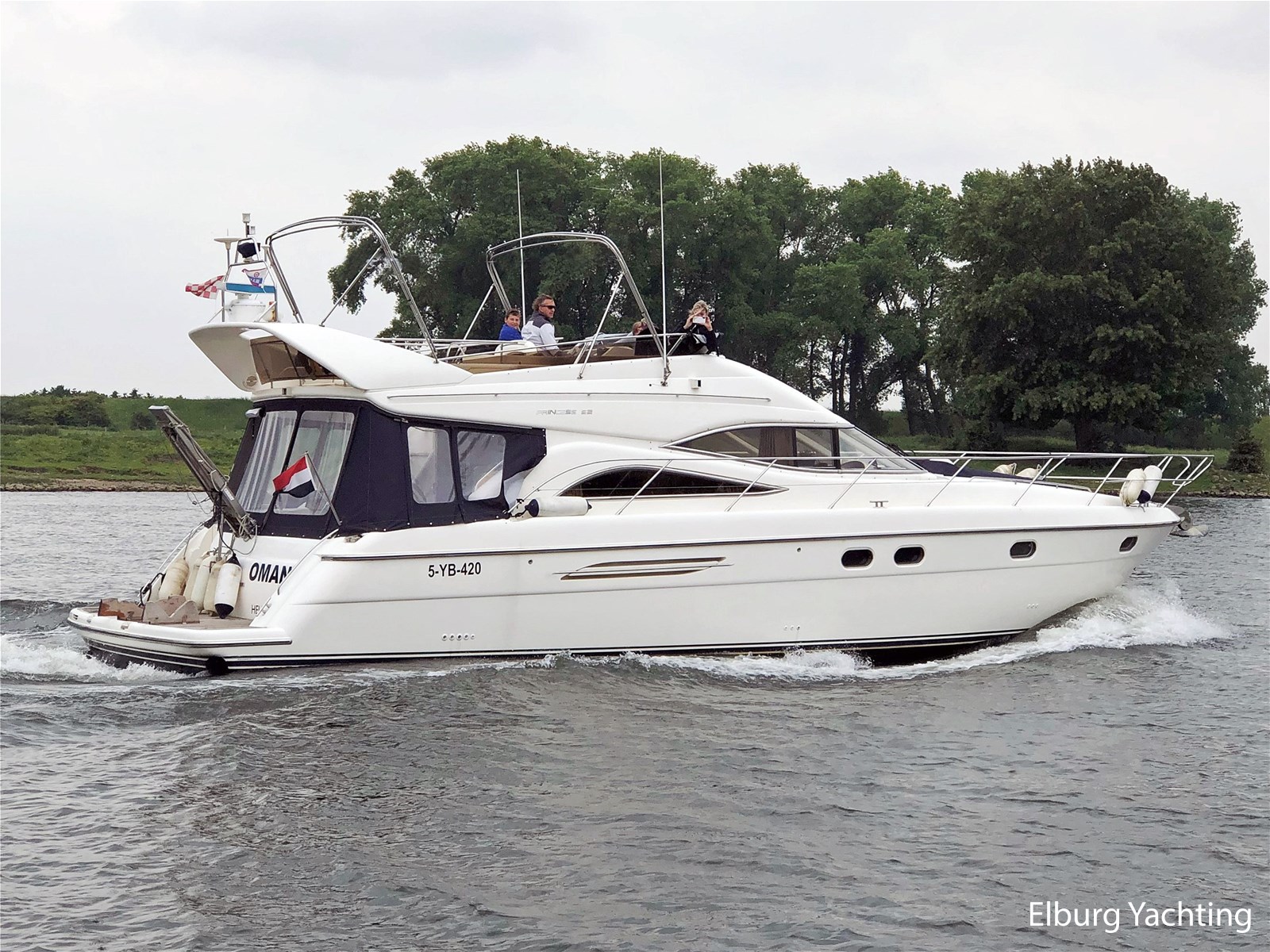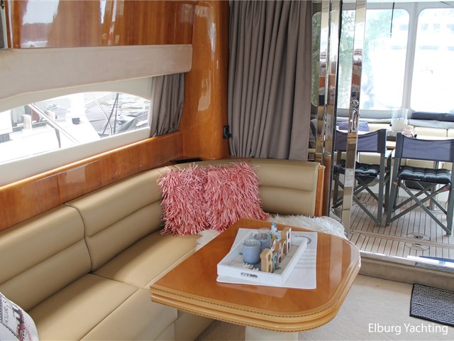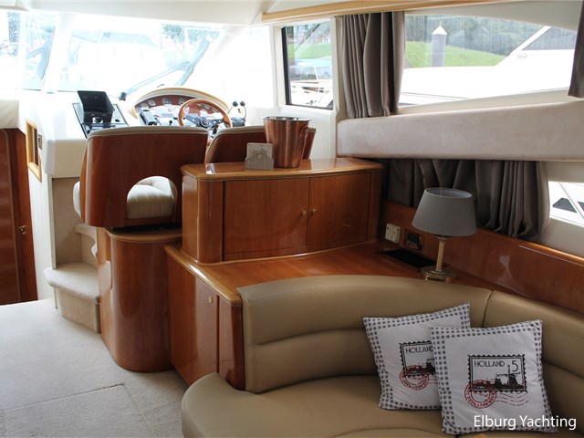 De Princess 52 flybridge is een mooi gelijnd snelvarend polyester jacht met het oog op kwaliteit. Dit jacht is van bouwjaar 1997 en geleverd in 1999. Deze Princess 52 heeft een indeling met maar liefst 3 vaste hutten + crew cabin in het achterschip waarmee er plaats aan boord is voor 8 opvarenden. De salon is ruim opgezet met een aangesloten open keuken en achterdek op gelijke vloer. Dit jacht is voorzien van: Vaste zitbank in open kuip met buitenkussens (2021), open kuip en salon gelijkvloers, r.v.s. schuifdeur naar salon, dubbele spoelbak in kombuis, volledig LED verlichting aan boord, "luie" vaste trap naar flybridge, ruime zitbank op flybridge, zonnebed op voordek en flybridge, trim tabs, aparte technische ruimte toegankelijk via salonvloer, 2 x elektrisch bedienbare zijramen in salon, volledige afsluitbare tent rondom open kuip, r.v.s. buitenreling rondom, biminitop over flybridge + volledige cover over stuurstand en zitgedeelte, r.v.s. fenderhouders, afneembare bijboot steunen op zwemplateau, hordeur in doorgang naar salon, veel kastruimte aan boord, buitendouche, deur in spiegel naar zwemplatform, toegang machinekamer vanuit de open kuip, zonneschermen rondom salonramen, de Hydronautica afstandsbediening maakt het aan- en afmeren kinderspel met een directe bediening voor de boeg-/hekschroef en motor(en) voor- en achteruit, minimale doorvaarthoogte ca. 4,90m. Laatste complete grote motoronderhoud uitgevoerd in 2025. Verder zijn in 2025 alle accu's vervangen, geïntegreerde koelbox op de flybridge aangesloten, romp en opbouw volledig gepolijst en is er een keramische coating aangebracht. Het schip is zeer compleet gedocumenteerd.
